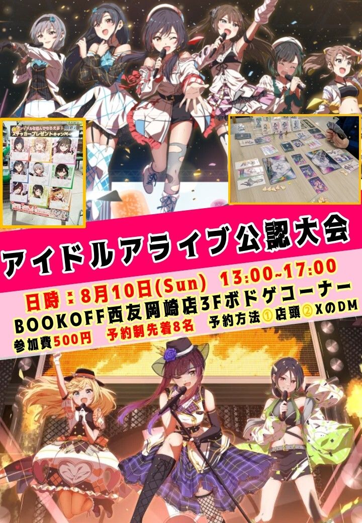 | 会場住所 | 〒444-0840 愛知県岡崎市戸崎町越舞2−1 ブックオフ248号西友岡崎店(岡崎) |