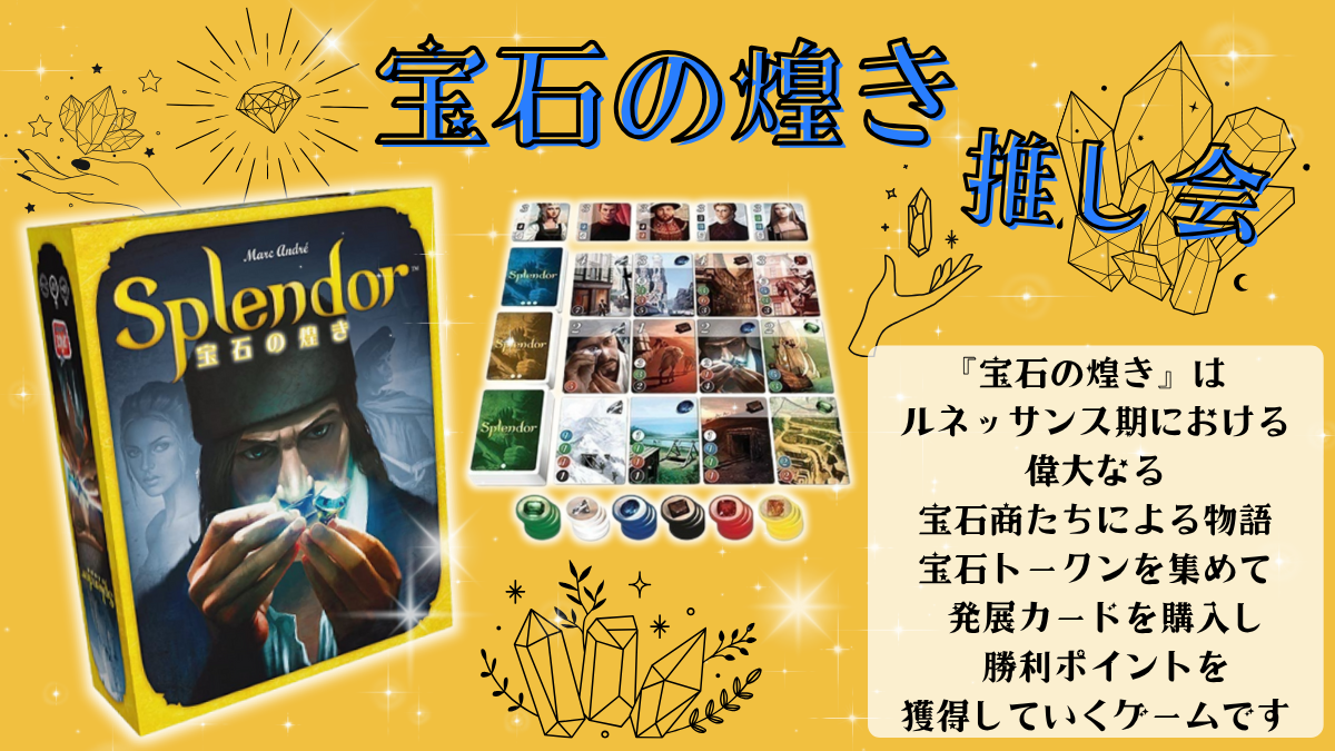 インテイルズカフェには ・宝石の煌き ・宝石の煌き:デュエル がございます!ぜひ遊んでみませんか! 【日程】8月3日 (日) 14:00~23:30 【料金】通常設定 この会を機に様々なボードゲームを知ってもらい、