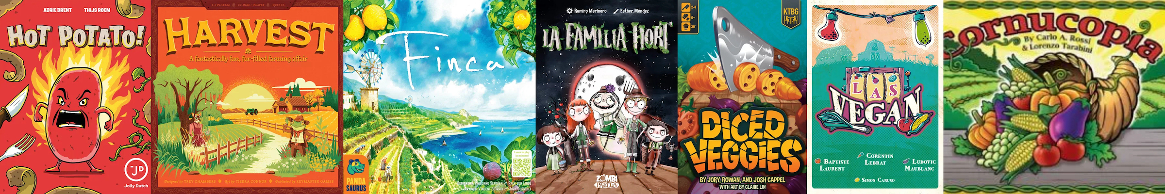 1「HOT POTATO ! / ホットポテト!」 ・「!」がポイント。ホットポテト系ゲームは何故か6つ?もあるので「!」で区別しよう。手札から同時にポテトを出して比べるだけの超簡単ゲーム。ホットポテトはお邪魔カードだけどランボテトがいれば安心だ。野菜ゲームの代表と言えよう。 2「HARVEST / ハーベスト」 ・ハーベストってタイトルも多いね。これはハーベスト2024だ。うんちトークンでお馴染みのやつだ。畑作って頑張るまじめなゲーム。畑でテトリスしろ。開墾して土地を広げろ。開墾すると野生のワークショップが飛び出すので捕まえて建てよう。ルールブックの紙の材質が素晴らしい素晴らしいゲーム。 3「FINCA / フィンカ」 ・マヨルカ島でフルーツを収穫だ。マヨルカ島ってだけで地中海サワーとか想像して口が酸っぱくなるよね。ただ適当に収穫してもダメだ。人々の欲しいのを収穫してロバで届けて点数を稼げ。そしてフィカ(いい感じの邸宅)をもらえ。地中海の風を感じる素晴らしいゲーム。 4「LA FAMILIA HORT /ラファミリアオルト」 ・オルタンシアおばあちゃんの畑をみんなで耕そう。おばあちゃんは幽霊だけど君らをサポートしてくれるはず。畑ゲーですが植えて売るだけの簡単ゲーム。イラストが可愛い素晴らしいゲーム。 5「DICED VEGGiES / ダイスベジーズ」 ・ベルクロテープで留めた木の野菜を木の包丁でザクっとする玩具があるじゃないですか、あれだな。野菜ダイスをテリーヌみたいに並べて包丁でうまーく捌いて必要な材料をゲットして調理するゲーム。ヘルシー感溢れる素晴らしいゲーム。 6「LAS VEGAN / ラスベガン」 ・キャベツのスロットマシーンのトリテ。7のカードが出るとボーナス条件(マイナスが多いけどさ)が追加される。トリテとしてはアボイダンス系。いいんじゃないかな。ルールは簡単な素晴らしいゲーム。 7「Cornucopia / コルヌコピア」 ・ナスとかトマトとかで豊穣の角を作ろうなギャンブルゲー。何枚引いたら揃うかなを予想したり、それが達成できるか予想したりする。3色コインを使ったりとちょっとよくわかんないとこもあるけど、それがまたいい素晴らしいゲーム。古典的問題作。 参加してくださる人のゲームの持ち込みは大歓迎です。ただテーマをある程度は考慮して持ってきてね。テーマとは無関係なゲームは遊ばないとしても文句は受け付けないぞ。テーマをどこまで拡大解釈するかは君に任せる。テーマと関係あるゲームの場合は、どのゲームを遊ぶかみんなで決めましょう。私の用意したゲーム優先だ、とかではありません。ただ会としては「軽すぎない重すぎないゲーム」を主にプレイするつもりです。そこから外れる場合はちょっと相談となるかもしれません。 テーマに合ってれば、同人ゲームでも構いません。テストプレイとかでもいいのか、と言われれば私は構いません。ただあらかじめ連絡してくれた方がスムーズかな。 とかな。 人数とみなさんの持ち込みと合わせて、適当にプレイしたいと思います。 場所は品川区の荏原第五地域センターの第5集会室です。3階です。 時間は12時00分から19時00分です。 終了時間は多少延長できますので皆さんの気分で考えましょう。 途中参加、途中退出は可能です。 参加費は500円です。 会場内は飲食可能です。 持ち込みは自由ですが匂いの強いのはやめた方が無難かと。 食事&おやつ休憩あります。 コンビニ等はそばにあります。 途中休憩をはさみまして、多少のんびり目なスケジュールかと思われます。 飲酒はできません。 会場全体は禁煙です。 ゴミは各自で持ち帰ってね。 近所のコンビニとかに捨てちゃあダメだよ。 当たり前ですが社会的にダメだよなことは全てダメです。 ダメなことをした人はダメ人間と罵ったあげくに参加をお断りします。 そんな感じです。 マスクの着用は任意です。 ツイプラでも同内容で募集してます。 |