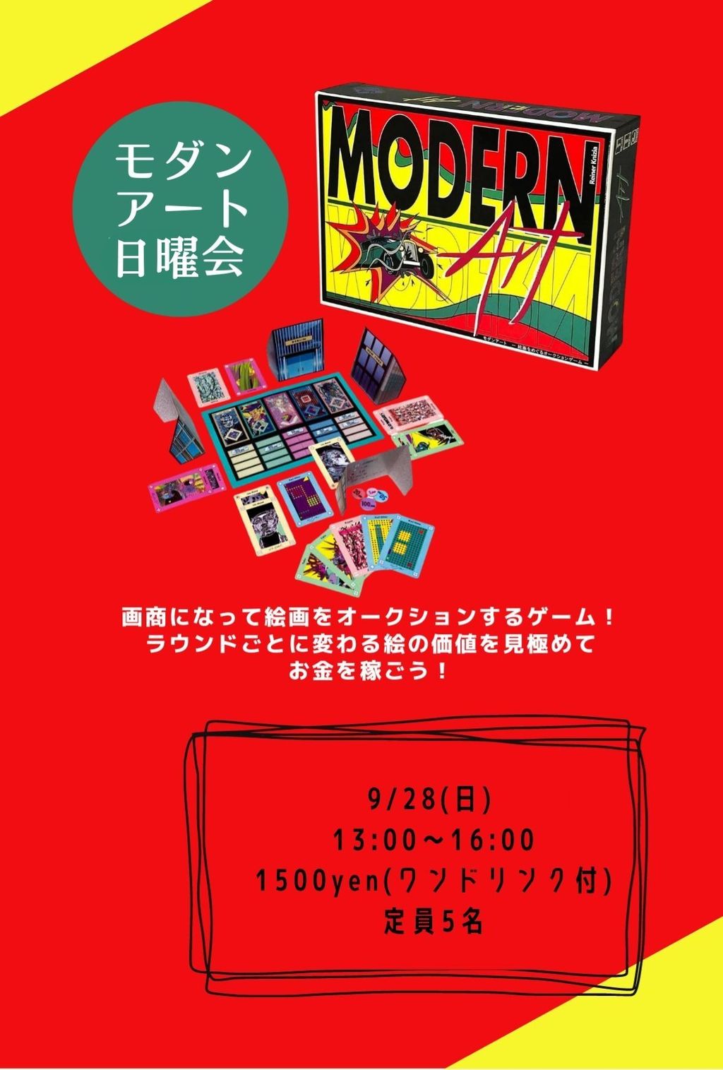 | 詳細内容 | ※こちらのイベントは募集定員に達したため、キャンセル待ちの対応となります。ご了承ください 約1年ぶりに復活開催! 🖼日曜モダンアート会 ※ボドゲーマからの予約は受け付けておりません。参加希望者は上記の申し込み方法から必ずお申し込み下さい。
