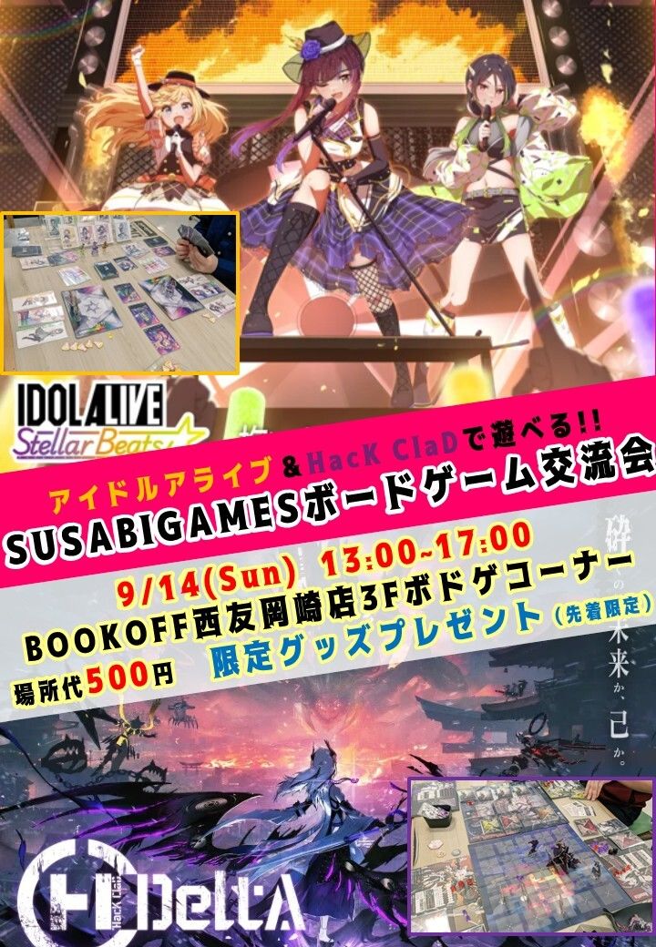 SUSABIGAMESボードゲーム交流会 イベント概要 日時:9/14(日) 13:00~17:00 イベント詳細 アイドルアライブやハッククラッドでお馴染みの 遊べるゲームは主に次の4つ! ルールがわからなくて参加しづらい方でも大丈夫です!スタッフがルールを丁寧にお教えいたします! |