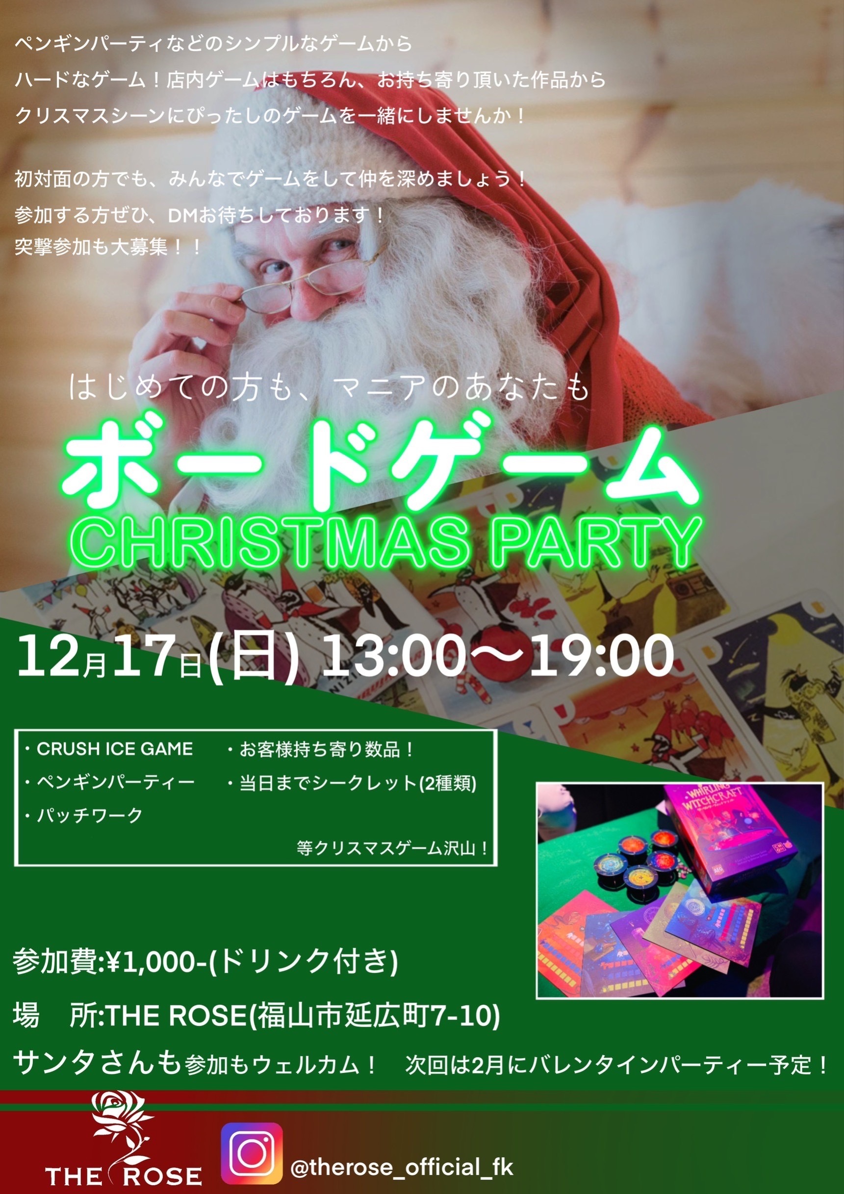 〜〜〜店舗紹介〜〜〜 THE ROSE 広島県福山市延広町7-10 福山市屈指のボードゲームができるBar マーダーミステリーができる店に至っては 広島県内でもほぼ唯一ではないでしょうか! ボードゲーム以外にも #交流 #酒 #カラオケ #ボードゲーム #ダーツ #Switch #プレステ4 #シーシャ #DJ #映画 #安い! こんなにアミューズメントがあるBarはローズだけ🌹そして、マーダーミステリーができるのもローズだけです! 店が気になった場合インスタグラムを見て DMください!! https://instagram.com/therose_official_fk?igshid=OGQ5ZDc2ODk2ZA%3D%3D&utm_source=qr |