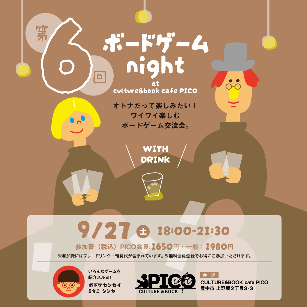 オトナだって楽しみたい! 世界的コミュニケーションツールであるボードゲームを用い、 ボードゲームに興味がある方も無い方も。 夜のひと時を、ゆったりとご一緒しませんか。 ★ご予約はこちらから★ 【日時】2025年9月27日(土)18:00~21:30(開場17:00) 【会場】カルチャー&ブックカフェPICO 【参加費(税込)】 ・定員は特に設けておりません。 ※会場は飲食店なので飲食物等の持込みはご遠慮ください。 皆さんとご一緒できる事を楽しみにしております♪ |