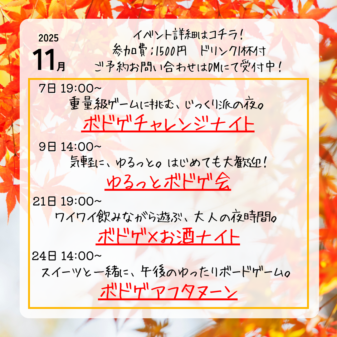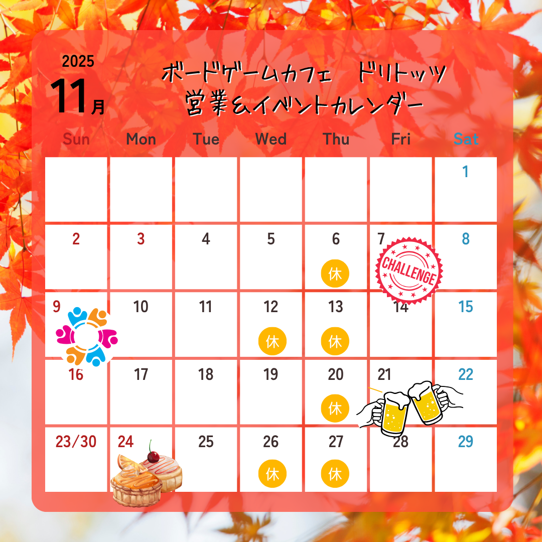 | 詳細内容 | 11月の営業日、イベント予定はこちら!