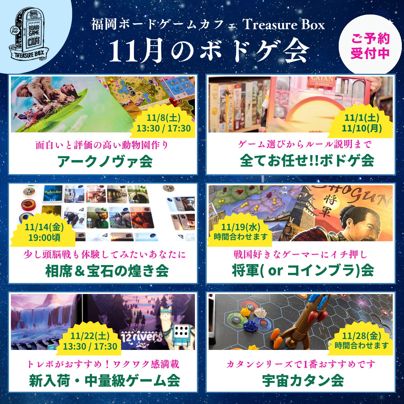| 登録先カフェ/店舗 | 福岡ボードゲームカフェ Treasure Box |