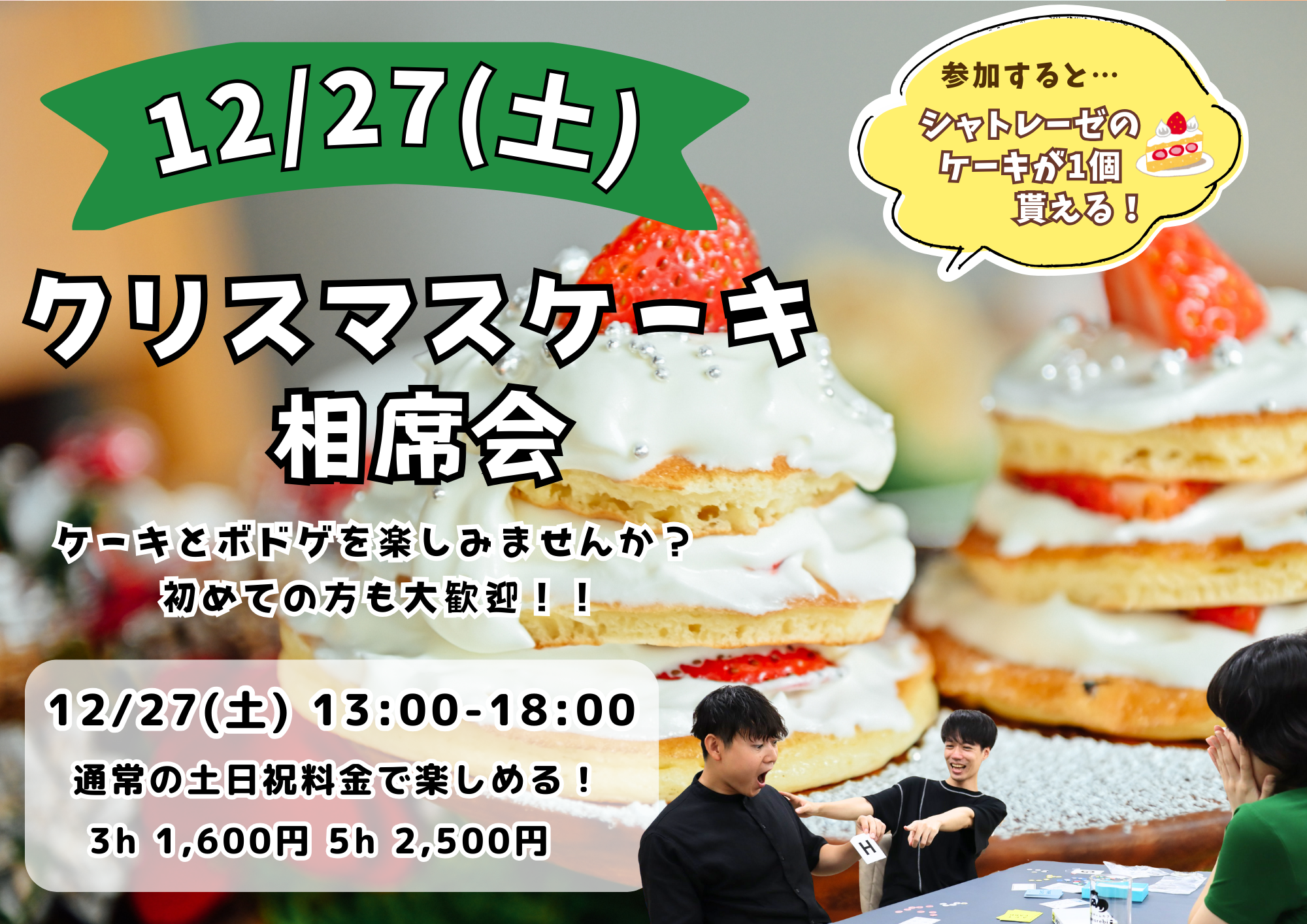 こんな方におすすめ✨ ・甘いものが大好きな方 ・色んなゲームでワイワイ盛り上がりたい方 ・クリスマスケーキを食べたい方 開催日時🗓️