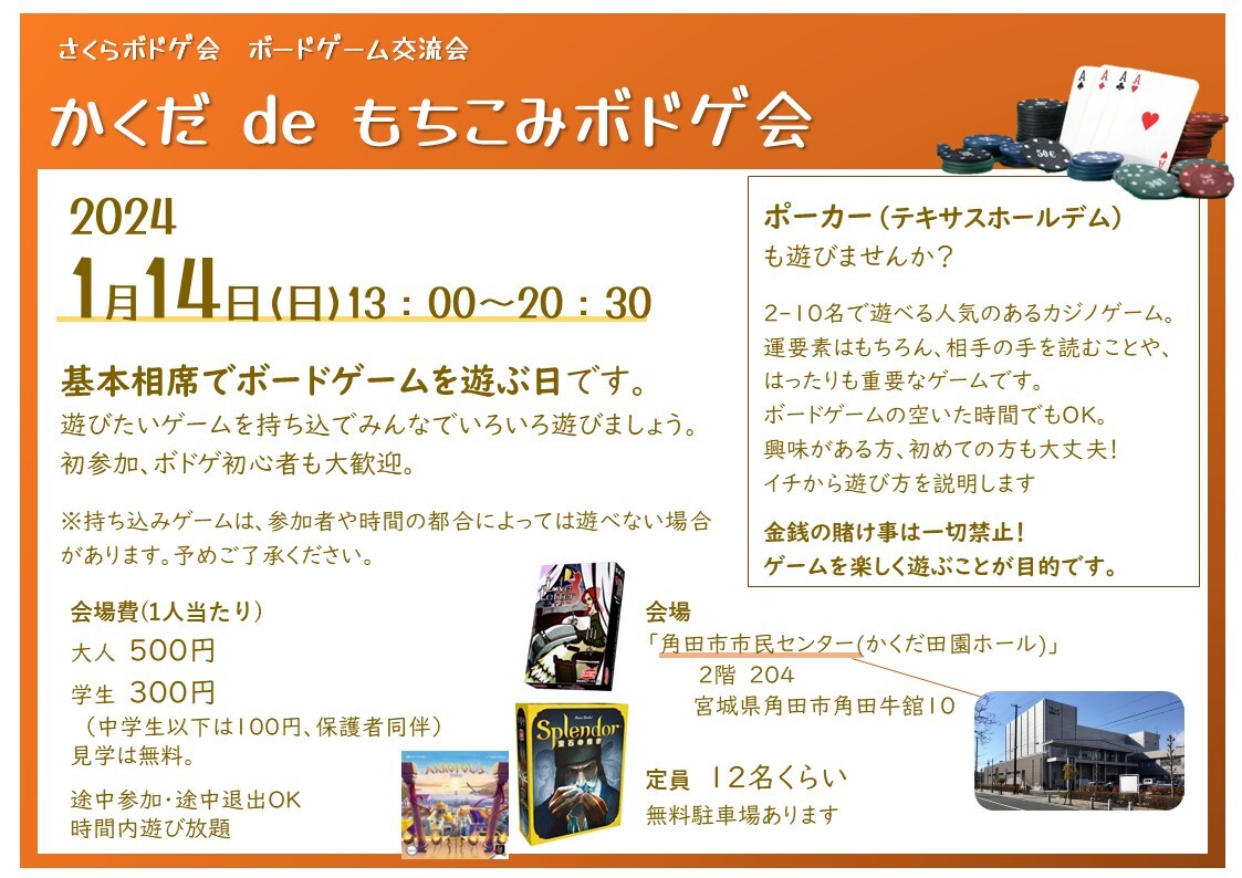 | 日時 | 2024年1月14日(日) 13:00~20:00 |
