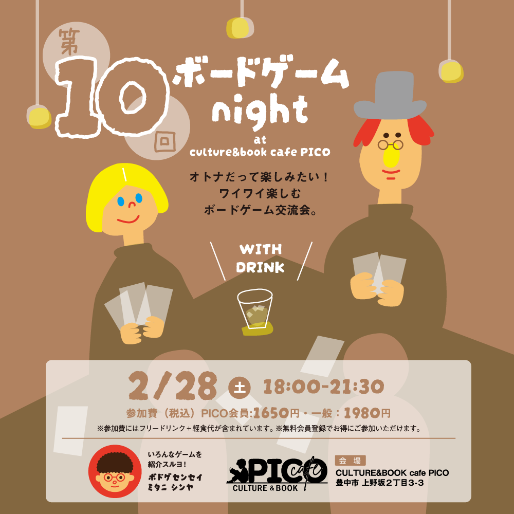 オトナだって楽しみたい! 世界的コミュニケーションツールであるボードゲームを用い、 ボードゲームに興味がある方も無い方も。 夜のひと時を、ゆったりとご一緒しませんか。 ★ご予約はこちらから★ 【日時】2026年2月28日(土)18:00~21:30(開場17:00) 【会場】カルチャー&ブックカフェPICO 【参加費(税込)】 ・定員は特に設けておりません。 ※会場は飲食店なので飲食物等の持込みはご遠慮ください。 皆さんとご一緒できる事を楽しみにしております♪ |