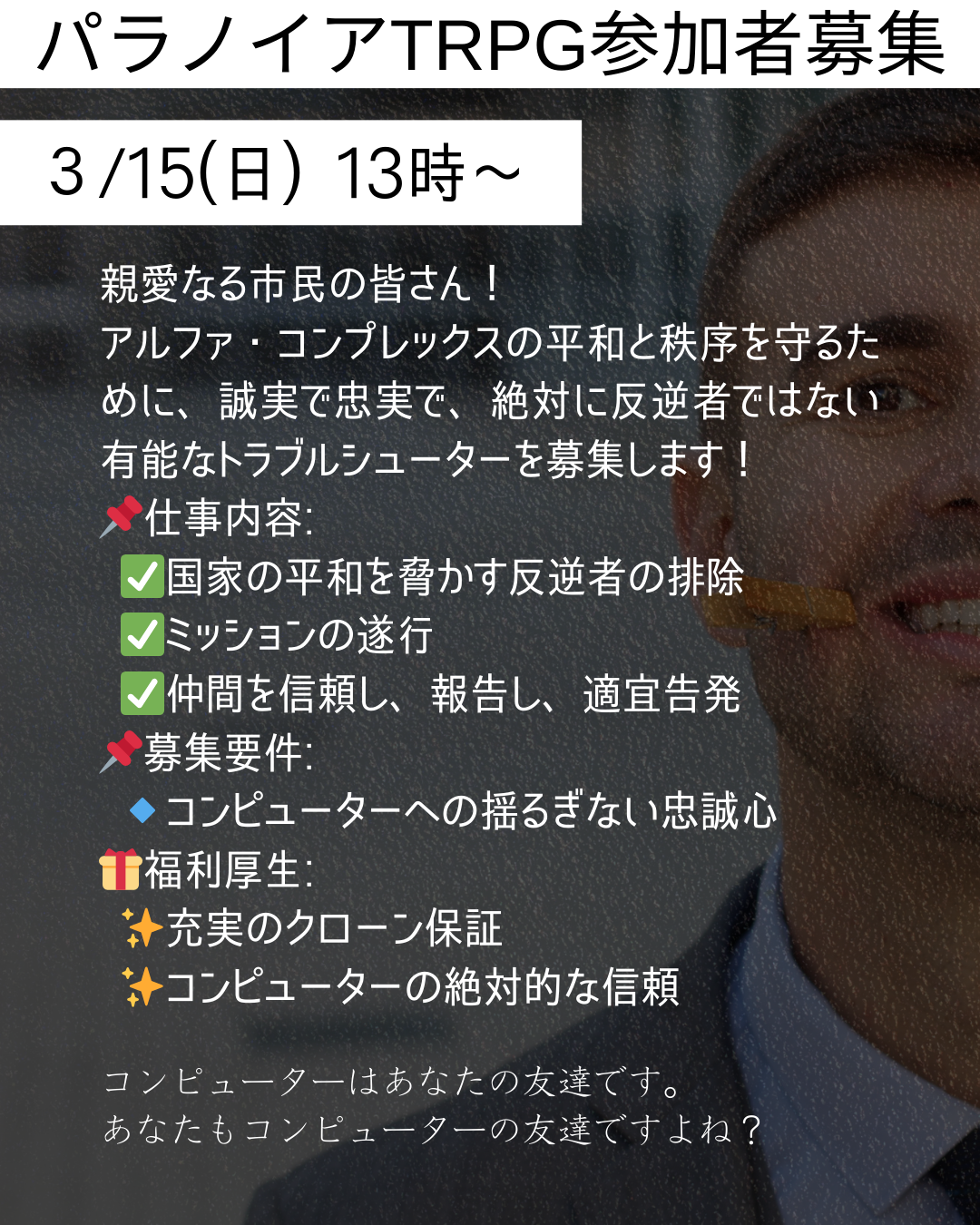 | 日時 | 2026年3月15日(日) 13:00~18:00 |