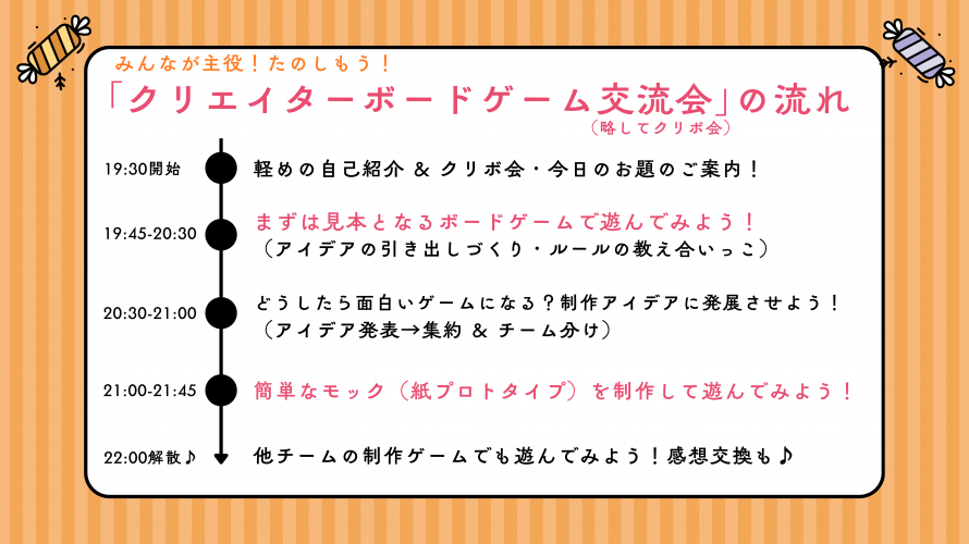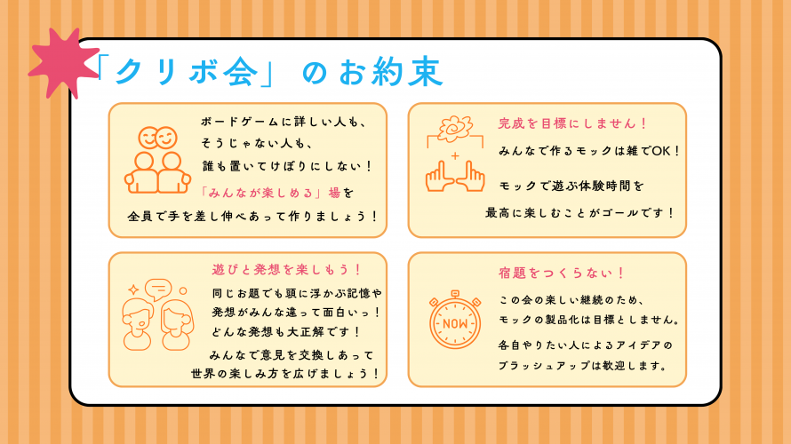 今回を含め、しばらくクリエイターボドゲ交流会では、会自体の楽しい継続のため、