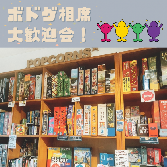 品川区大井町駅徒歩直ぐのポップコーンズ*で、 相席大歓迎会を開催します! 楽しめるゲームと相席大歓迎卓をご用意してお待ちしております。 ルール説明はスタッフがサポートしますので、初心者でもお気軽に。 当日は、当店スタッフがおすすめのボードゲームを遊ぶ予定です。 人数やお好みに合わせて選びます。リクエストは下記コメント欄で募集中!! 途中参加・途中退室も可能なので、どなたもゆるーくご参加くださいませ。 おひとり様、グループでのご参加大歓迎です! イベント概要 ■日時 開始時間:14:00 ■参加定員 ■参加費 【平日料金】 デイパック(13:30~18:00):1500円1ドリンク付 ※デイパックで入店された方は+1000円でフリータイムに変更可