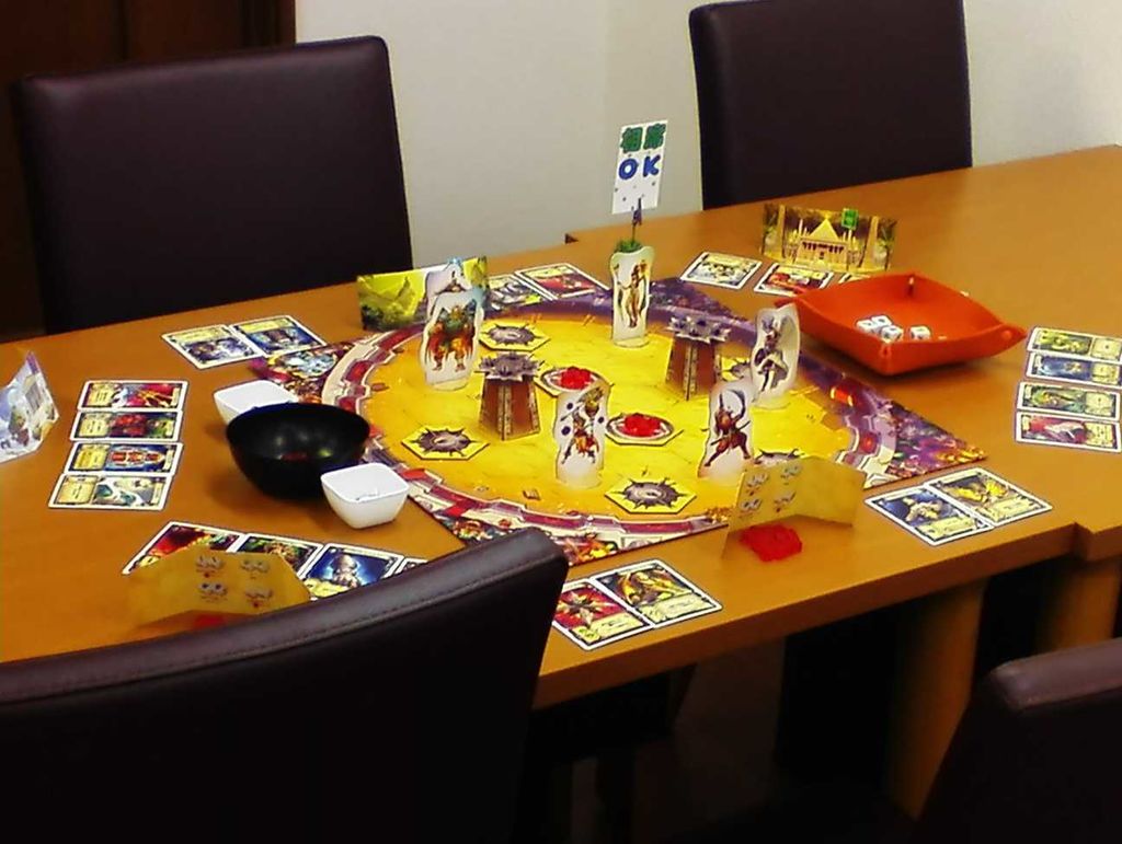 | 詳細内容 | 今週9月8日(金)の19時30分より「相席OK☆イタメシの会」を開催します。 常連の皆様が当店の色々なゲームを相席OKで、ドンドン遊ぶ会です。 今週は「アリーナ~神々の闘技場~」も、遊んで頂ければ幸いです。 他にもイタリア料理っぽいボードゲームの「ニューヨークスライスピザ」と「スパゲティ」「ビッグチーズ」、そして「ワインと毒とゴブレット」などを遊んでおられます。 美味しそうなメニューですが、どれもボードゲームですよ! 17時頃から来られる方も居られますので、「ディヴィナーレ:倫敦の霊媒師」や「アンドールの伝説」「ポーションエクスプロージョン」などに興じるかもしれません。 他のゲームのリクエストもOK。お持ち込みも大歓迎です! 7名まで参加者を募集中です。 参加者にはスタンプ1個を追加で捺印させて頂きます。 どうかお気軽に、ご予約を下さいませー☆