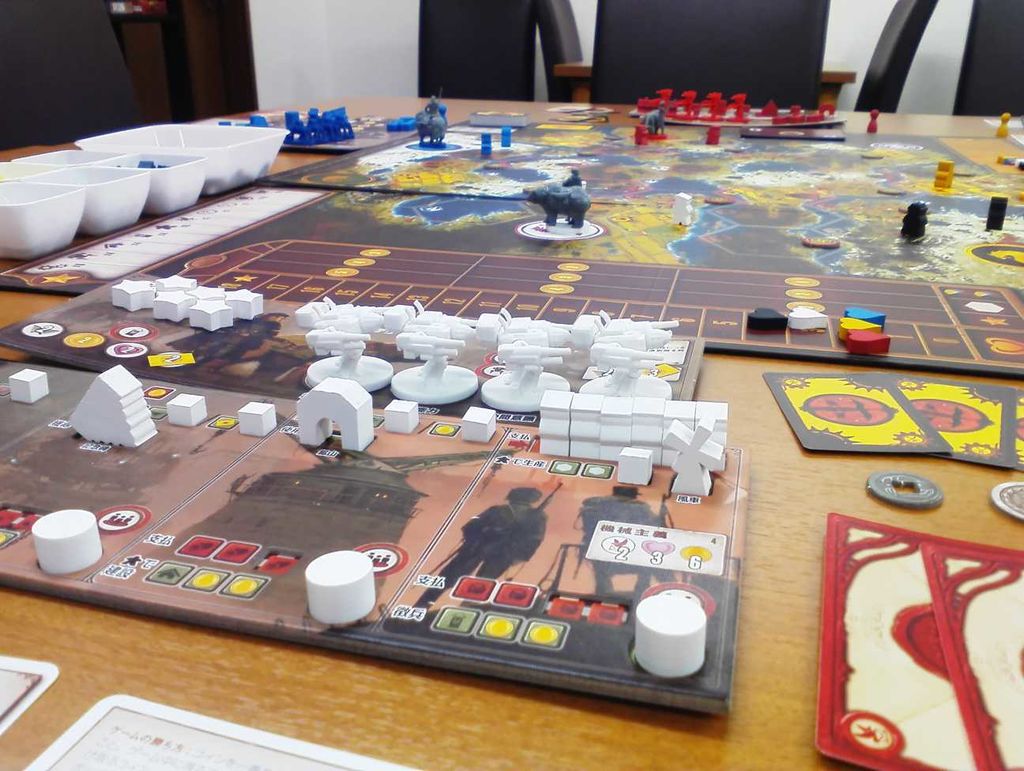 魅力的なイラストとテーマ、フィギュアのスチームパンク国家繁栄SLGゲーム。5人まで対戦できます! こちらも説明込みで3~4時間はかかる重量級ですが、キャラクターやメックと呼ばれるフィギュアを配置し、人心を得ていく独特のシステム、戦争も手段の一部という奥深いゲーム性がやり応えのある人気作です。 この機会に是非とも、お楽しみ下さいませ。 |