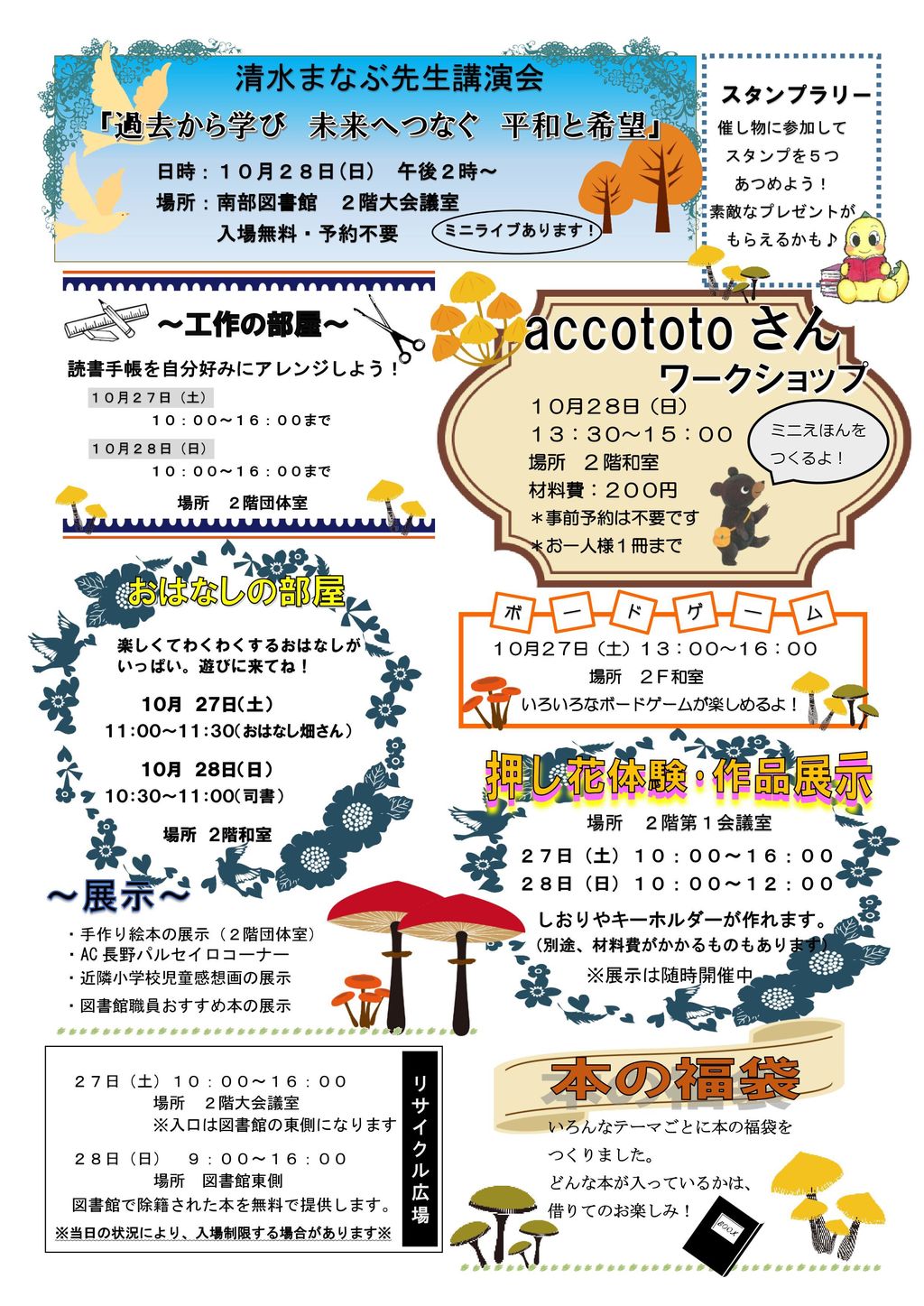 | 詳細内容 | 小さい子供、親子で参加できるボードゲーム会です。 是非気軽にお越しください。 ■日時 10/27(土) 13:00~16:00 ■場所 長野市篠ノ井御幣川1201 長野市立南部図書館 2階 和室 ■駐車場 駐車場は工事中のため混雑が予想され ます。公共交通機関をご利用ください。 (ハローワークの駐車場もご利用いた だけます) ■ホームページ https://library.nagano-ngn.ed.jp/index.html ■参加費: 無料 【注意事項】 最近、全国でネットワークビジネス、マルチ商法をやっている方の参加、宗教の勧誘や販売・営業目的の参加が多発しております。そのような方々の参加は固くお断りしています。 |