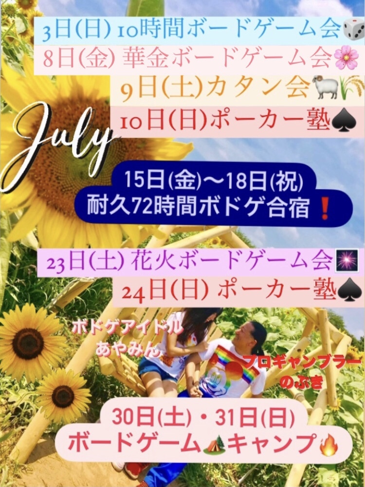 7/8(金) 11時~23時 途中参加&退出OK👌未経験者、ボードゲーム持込も大歓迎🎶