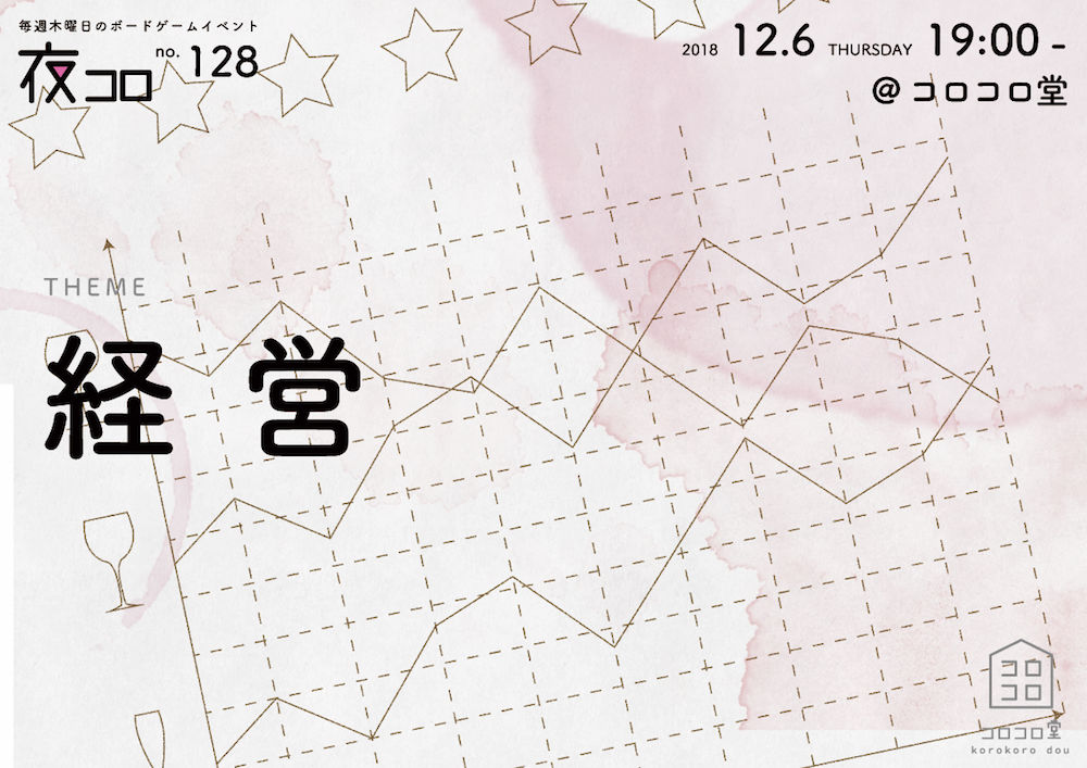「夜コロ」というのは毎週木曜日の19時からお店に遊びに来た人同士で集まってボードゲームを楽しむイベントです。もちろんお一人様大歓迎! スタッフがゲームのルール説明をしますので、ボードゲーム未経験の方や、あまり遊んだことのない方でも安心して楽しめるのが特徴です。 毎回テーマを一つ決めて、テーマに沿ったゲームで遊んでいきます。 開催場所 ボードゲームカフェ「コロコロ堂」(連絡先:03-5826-8960) 開催日時 毎週木曜日 参加料金 通常料金と同じ (※学割フリーパックも使用可能です) 参加方法 参加希望の方は、「Twipia(http://twipla.jp/users/korokoro_dou)にて参加ボタンを押す」「Twitterのコロコロ堂アカウント宛(@korokoro_dou)にメッセージを送る」「お電話」「店頭にて申し込む」のいずれかで参加をご申請ください ※途中入場、グループ様でのご参加も大歓迎です! ※開始時刻に間に合わない場合は、twipla・お電話等で来店予定時刻を事前にお伝え頂けますと大変助かります! 第128回のテーマは「経営」 今回の夜コロでは、会社や農場を”経営”していくゲームで遊びます。 有名なテラフォーミングマーズやアグリコラなど、ルールが少し難しいし時間もかかるけれど、何度も何度も遊びたくなる超名作に多く含まれるテーマのような気がします。 |