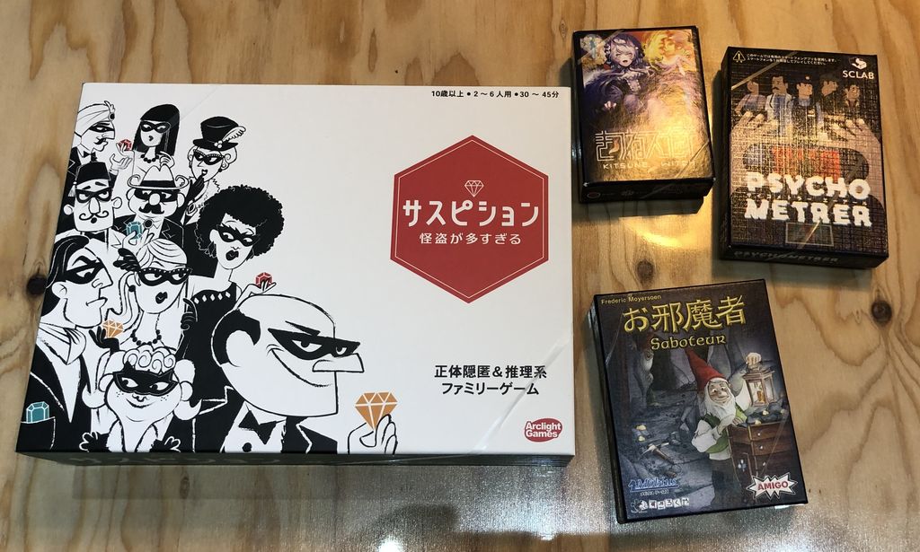 金曜ゲームナイト@正体隠匿会を開催したいと思います。 正体隠匿ゲーム 自分の正体を隠しながら進めていくゲームです。 今回は『きつねスイッチ』『サスピション』『サイコメトラーAR』『お邪魔者』などをやりたいと思っています。 8名以上の参加者が来店してくれた場合はゲームマーケット2019春の新作である 『ネカねと』及び『白雪姫のアップルーレット』をやりたいと思います。 ルールはご説明致しますので初めての方でもご安心下さい。 |