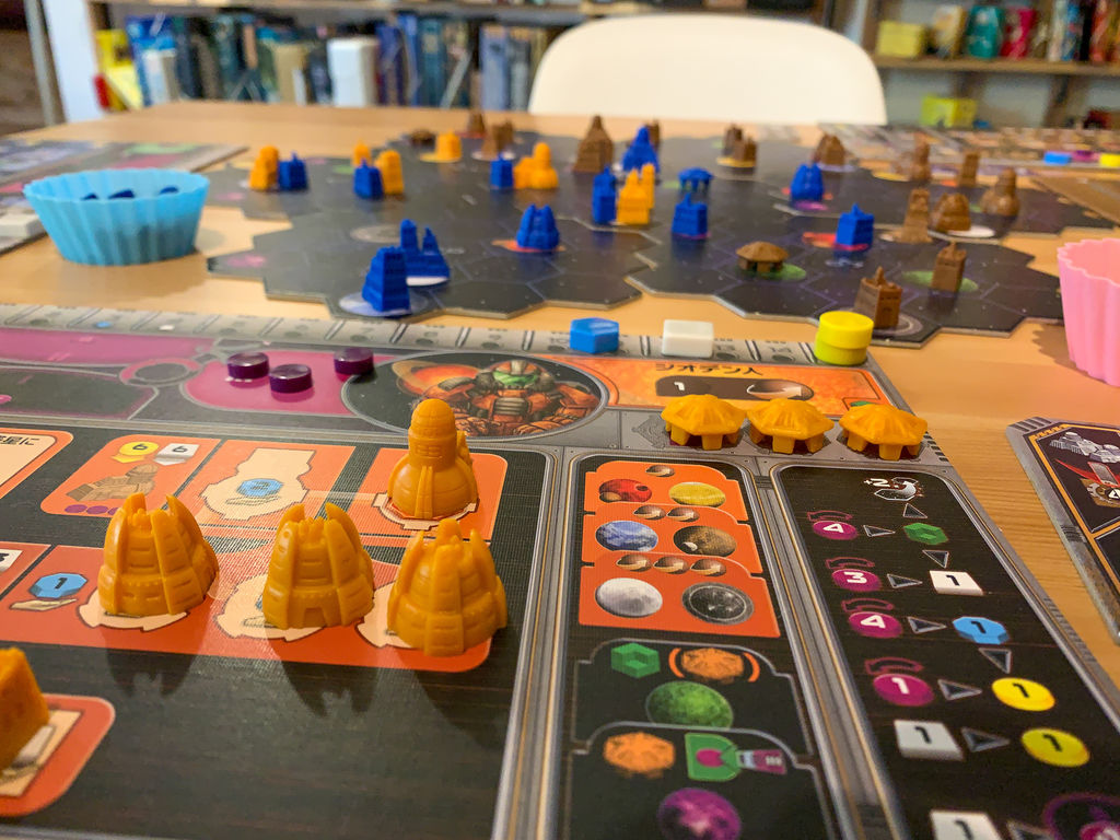 どんなゲーム? プレイヤーは宇宙人の1種族となり、数々の惑星を周りながら自分の種族を入植させたり、テラフォーミングすることによって宇宙の覇権を伸ばしていくというテーマの、スペースストラテジーゲームです。 大人気ゲーム『テラミスティカ』の派生作品となっており、国内外で非常に高い人気を誇るゲームとなっています。 このゲームの最大の特徴は、プレイヤーが選択した種族によって能力が異なることです。プレイヤー自身のリソースを使いながら、ボード上の惑星を開拓したり、すでに入植している場所に街を作ったりしていくことが基本なのですが、どんどん宇宙に侵略していくことが得意なキャラクターもいれば、他人の星に寄生することができる種族もいたりします。様々な特殊能力を駆使して、ぜひこの宇宙を我が物にしていきましょう!