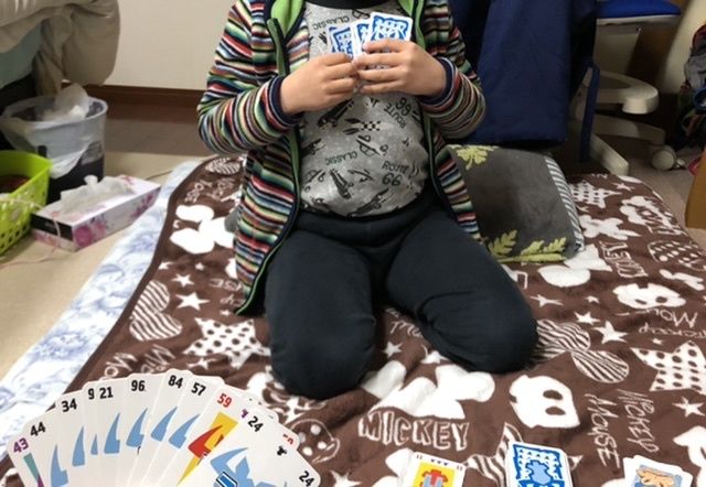 特に、捨て札3枚以上を引き取ったときにもらえる雄牛カードを使った際、とても楽しそうに1枚ずつ手札を出して、「これで上がり❗」と全部出し切ったときには相当驚きました。