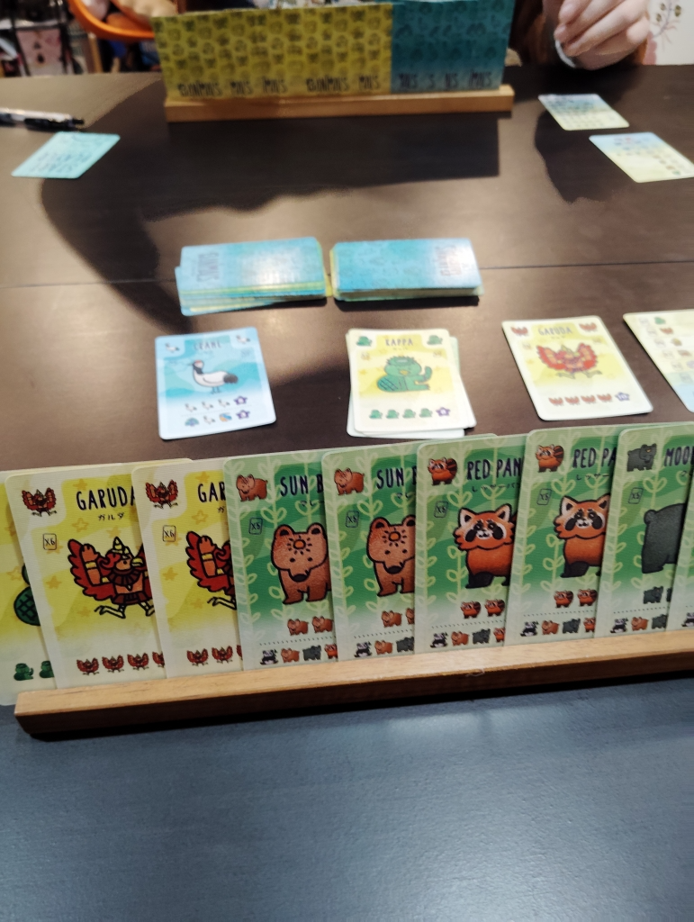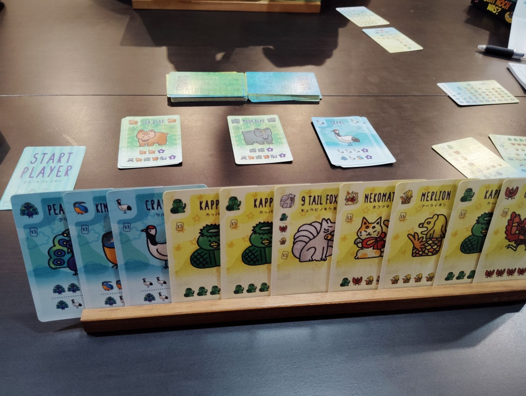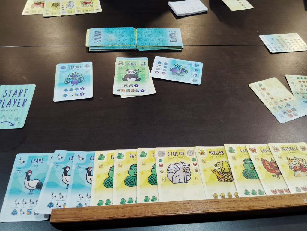 動物によってカード枚数が違うのと、3色のグループに分かれていてカード裏で、ある程度の集めている動物は分かるようになっています。