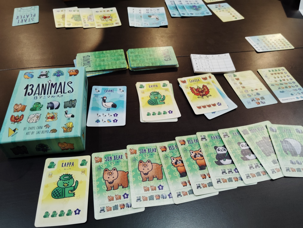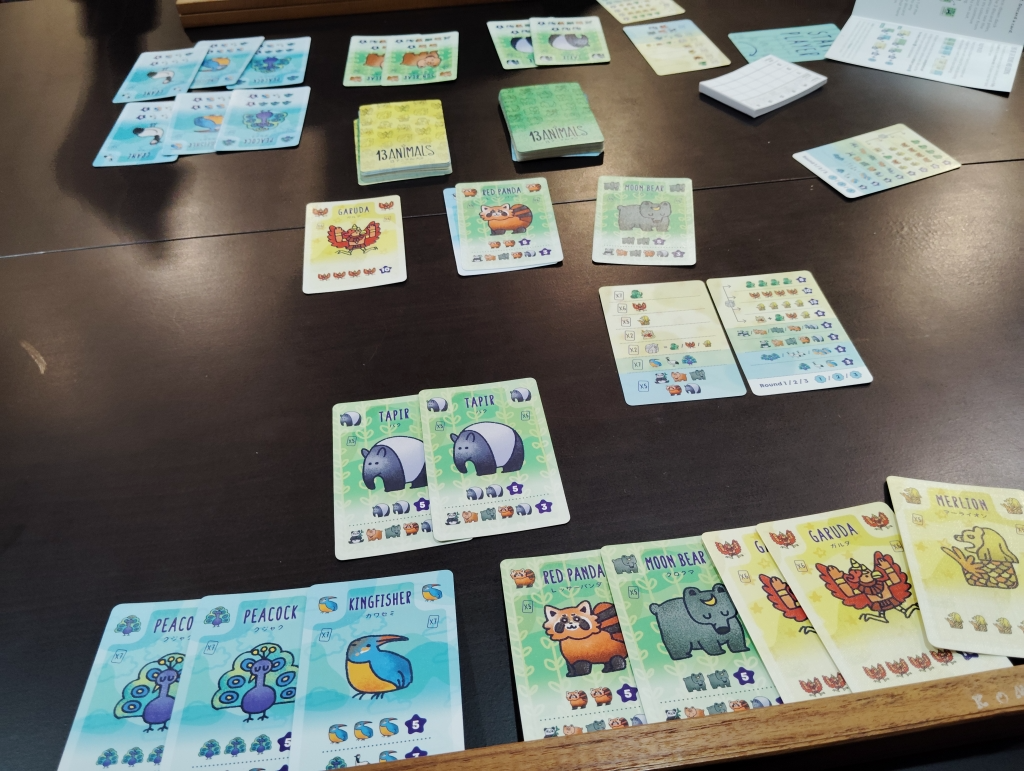 タイトル通り13種類の動物たちが描かれたカードを使ったラミー系で、動物の組み合わせに応じた得点を獲得できます。