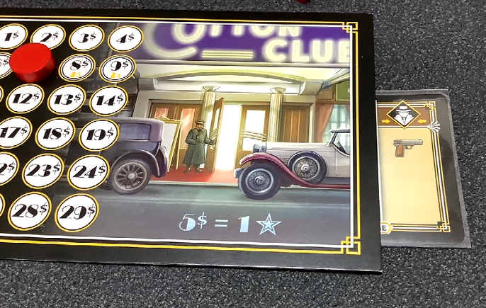 個人ボードに差し込んだカードで札束のアイコンとイベントカードの山札の残り枚数(全体のイベントの方)お金が入ります。