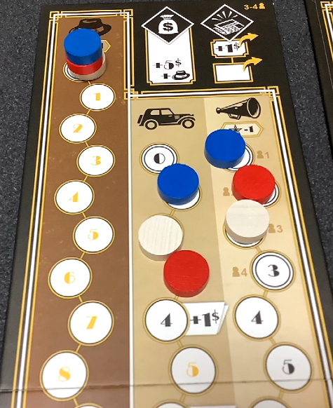 例えばこのカードを左上にある2ドルで購入(雇う)しました。すると左側にあるアイコンのトラックをうごかします。