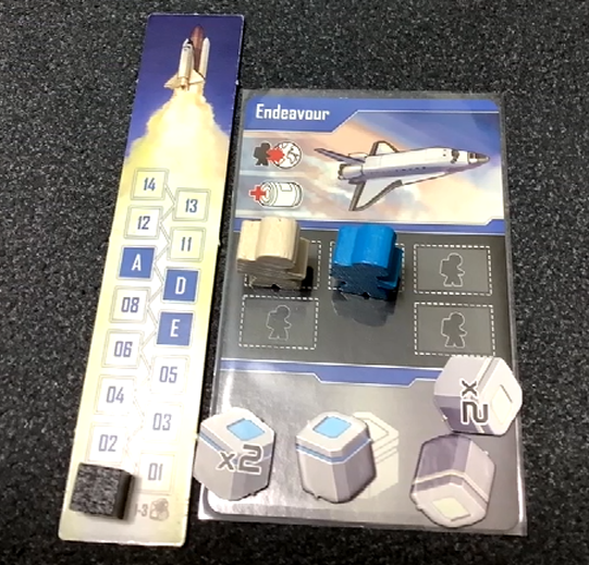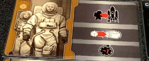 基本アクションは先ほど説明しましたがオレンジと紫色のカードがアクションポイントでキューブ置いてアクションを行い、米露どちらかのスペースシャトルの時間を進めてからモジュール側にキューブを移します。