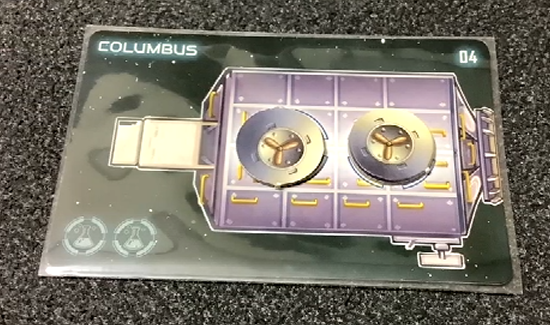 このゲームの打ち上げられてくるモジュールはこんな状態でやってきます。なので増設トークンと呼ばれるかぶせ物を取り除くことで、初めてそこの区画が利用できるようになります。