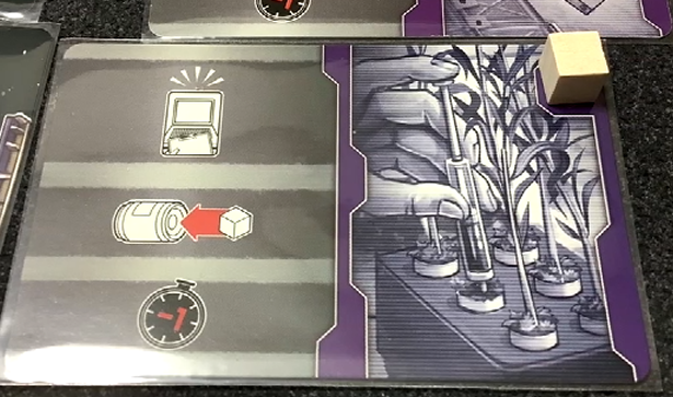 実験カードを達成します。区画に居座らないといけなかったり、一時的にその区画が開いていればOKとかいろんな条件と消費する物資がありますので、詳しいことは説明書で確認してほしいのですが、達成するとそのまま勝利点になります。