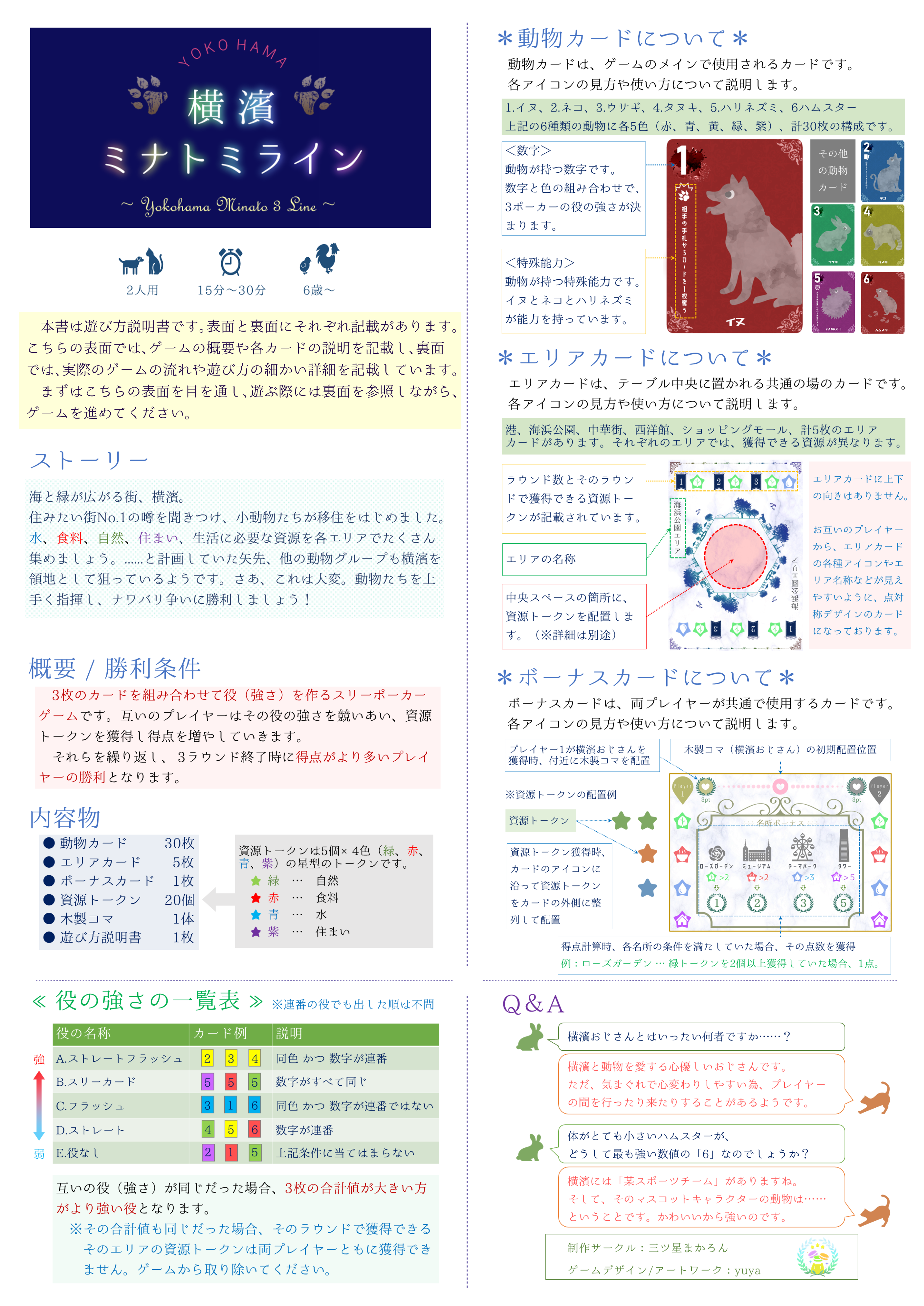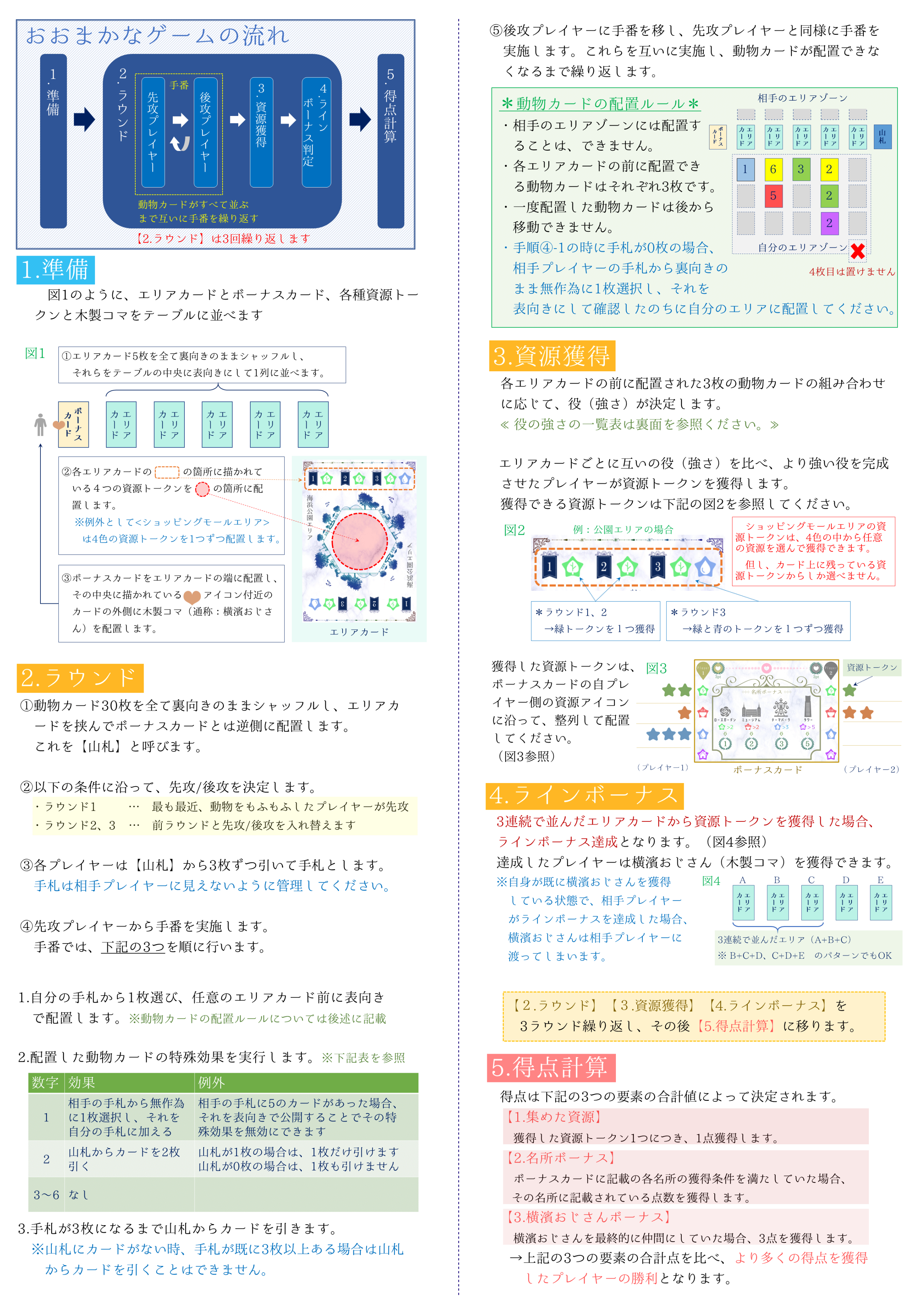 ルール/インストああ、1文字足りな本作の遊び方についての説明書となります。オモテ面とウラ面で、2ページの...2年弱前の投稿