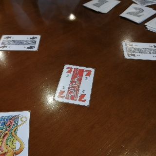 色関係なく小さい数字カードがトリックを獲得するのと、獲得してカードをまとめて裏向きの束にする前に手札から獲得したカードと同じ色のカードを1枚交換できます。交換は必ずではないです。