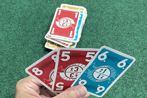 すなわち、場札が赤の5の場合、5±3の2か8を出すことができる。