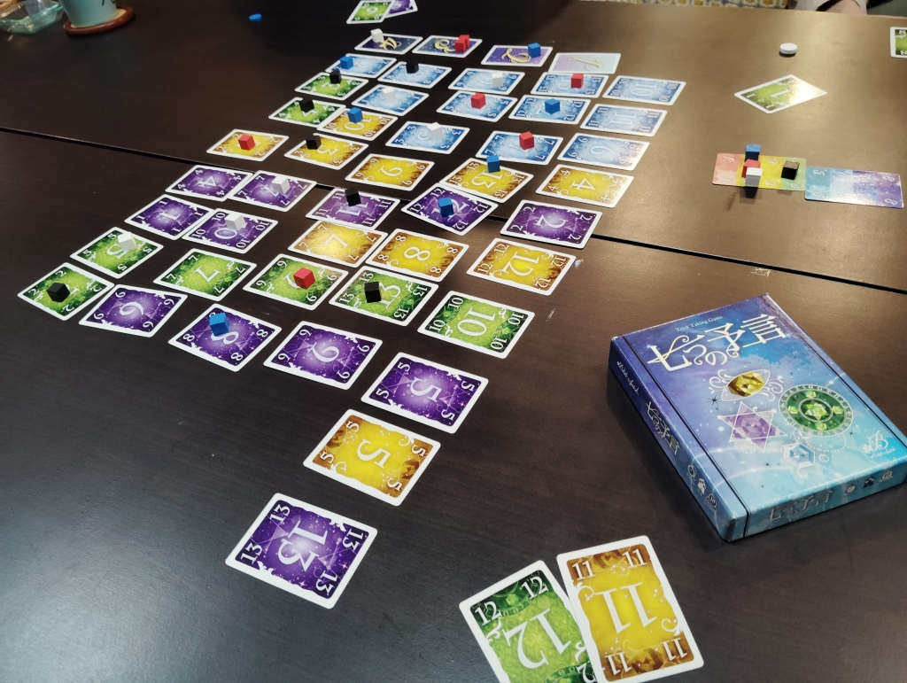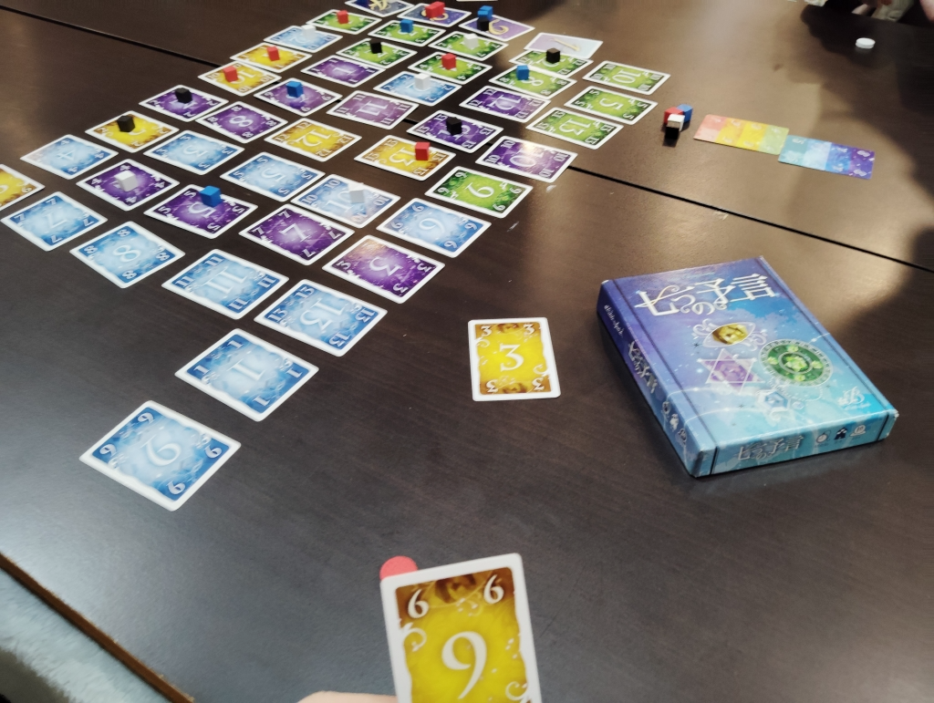 タイトル通り七つの予言を先に当てれたら勝ちで、自分の手札と場に並んだリードカラー10枚を見比べて秘密裏に予言を決める。
