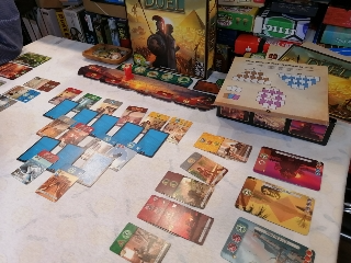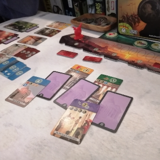 ロチェスタードラフトって言われる公開されているカードから1枚を選んで、資材生産、戦争、科学、特殊、ギルドと獲得していく。