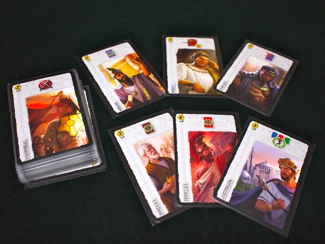 各時代の最初に追加される「リクルートフェイズ」では、自分の手札として持っている4枚の指導者のうち1枚をプレイできます。指導者達は、軍事を得点に換えたり、他のコストを軽減したりという能力を持っています。序盤から自国の目指す方向が明確になることになります。