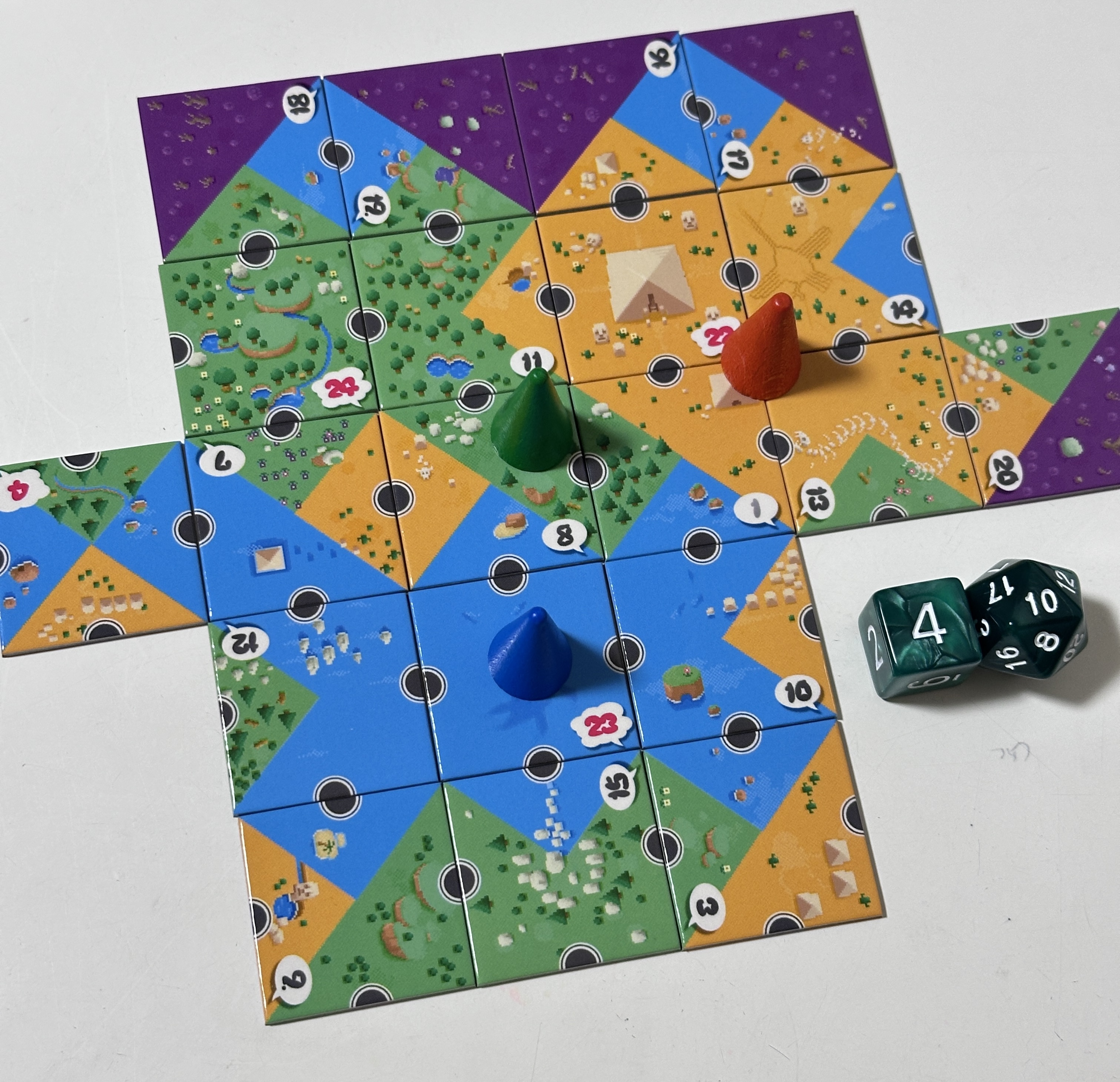 全員が同じタイルセットを持ち、ルールに従ってタイルを配置して他プレイヤーと得点を競うゲームです。