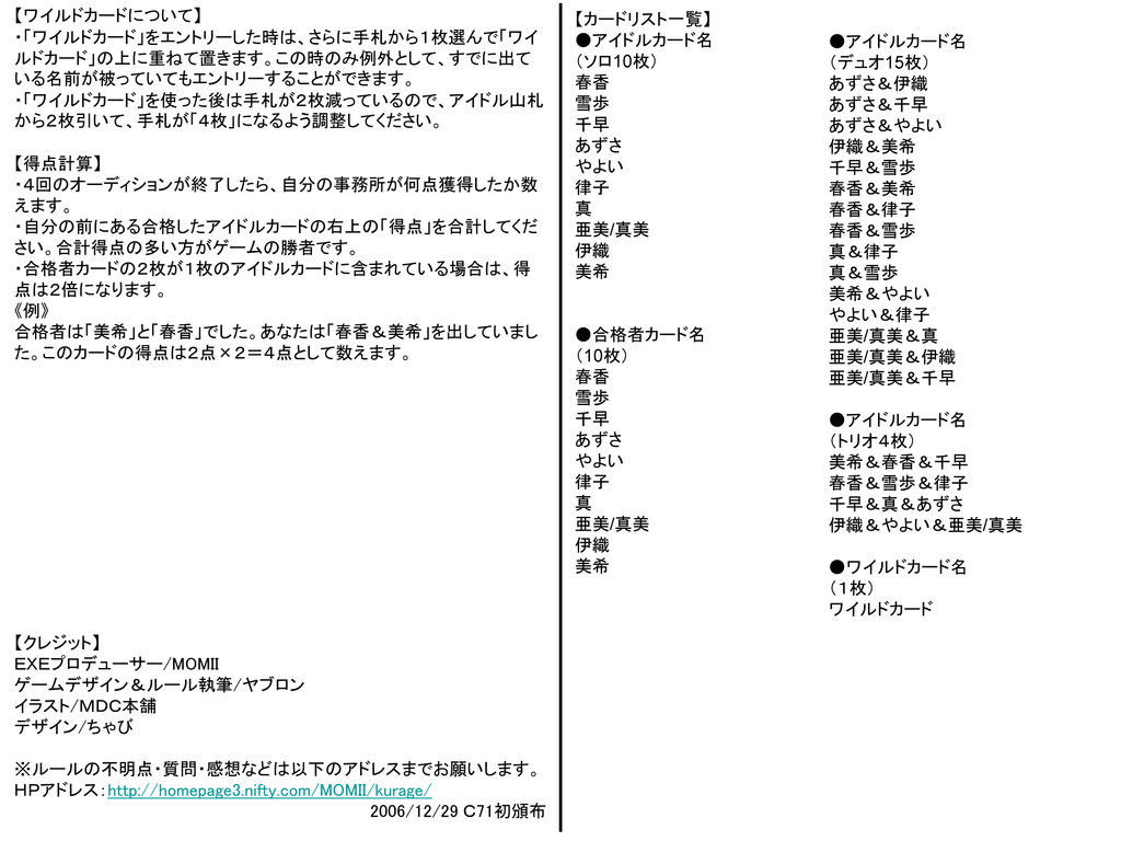 IM@S CARD GAME ENTRY BATTLEヤブロンさんのルール/インスト
