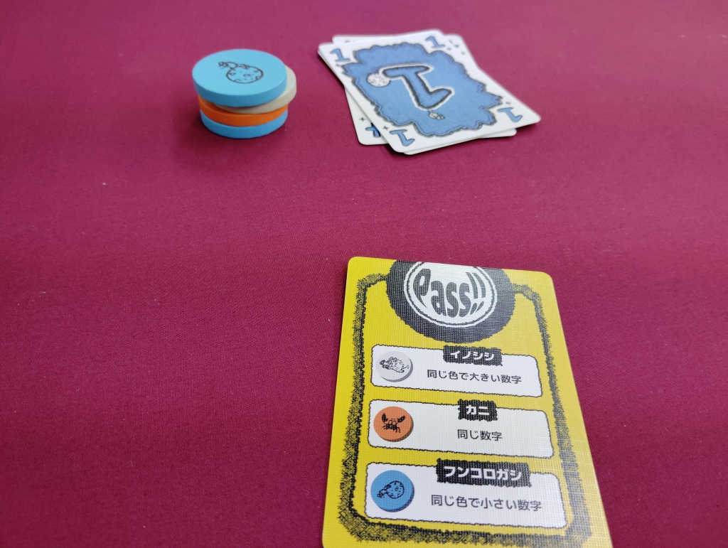 カードをプレイできない、したくないならパスとなり1番上にあるチップを受け取りハードパスになります。
