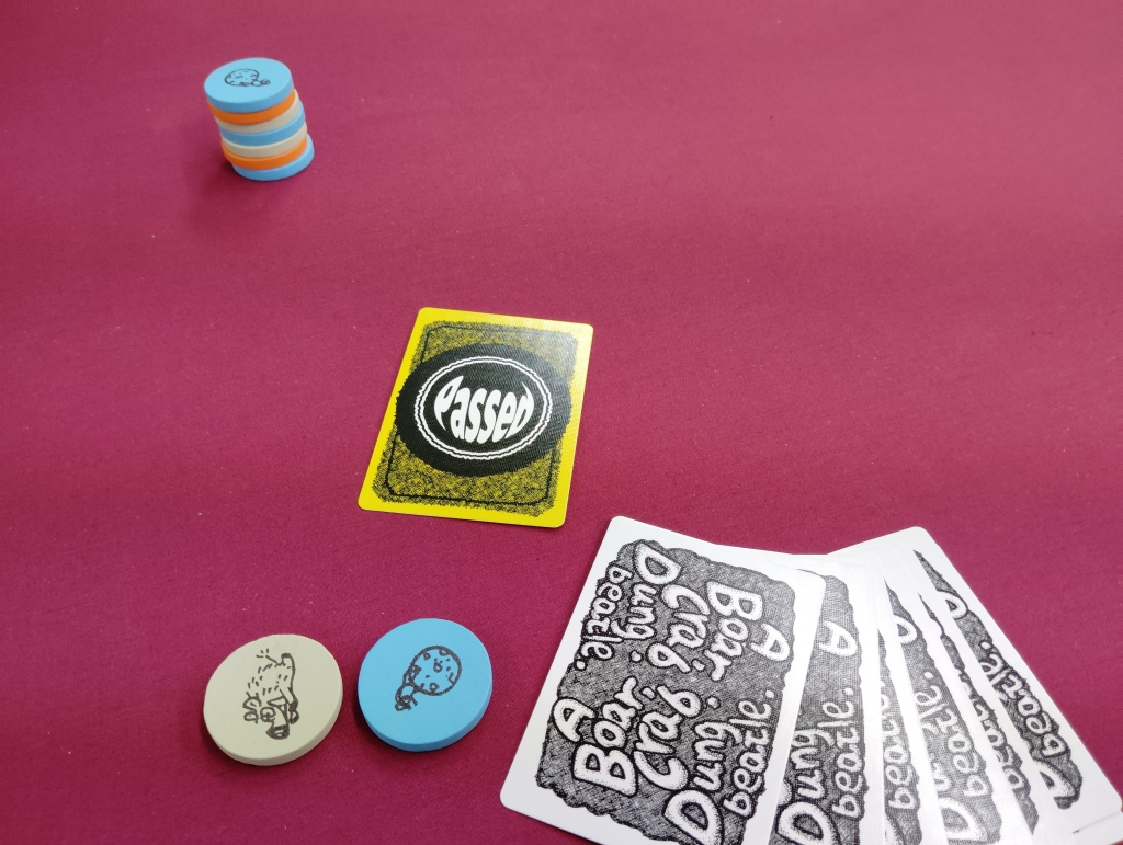 ゲーム開始時は、イノシシ→カニ→フンコロガシの順番でチップが重ねられています。