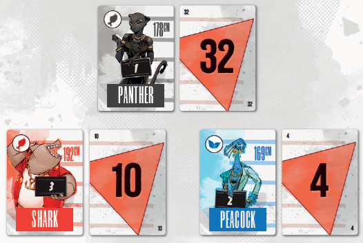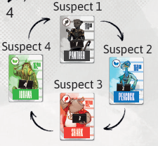 ファイルから1つの事件をプレイする前に、適切な容疑者カードをテーブルに置きます。容疑者1から順に昇順に、選択したファイルに示されている容疑者の数を取得し、円形に並べてテーブル上に置きます。