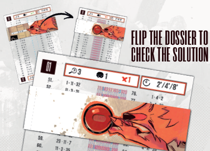 - 容疑者🔎 テーブルに置く容疑者カードの数。 - 犯人😎 見つけなければならない犯人の数。 - 真実✓または嘘× 真実または嘘の供述の数(固定または範囲)(たとえば、✓1〜2は「1つまたは2つの真実の供述」を意味します)。 - 制限時間 パフォーマンスを評価するための3つの時間 - 3つ星の評価を得るには素早く終了する必要があり、2つ星または1つ星の評価にはもう少し猶予があります。主にキャンペーンモード(7ページを参照)で使用され、オープンケースモード(6ページを参照)ではオプションです。 - 各ファイルの下部にも同じ情報が記載されています。 |