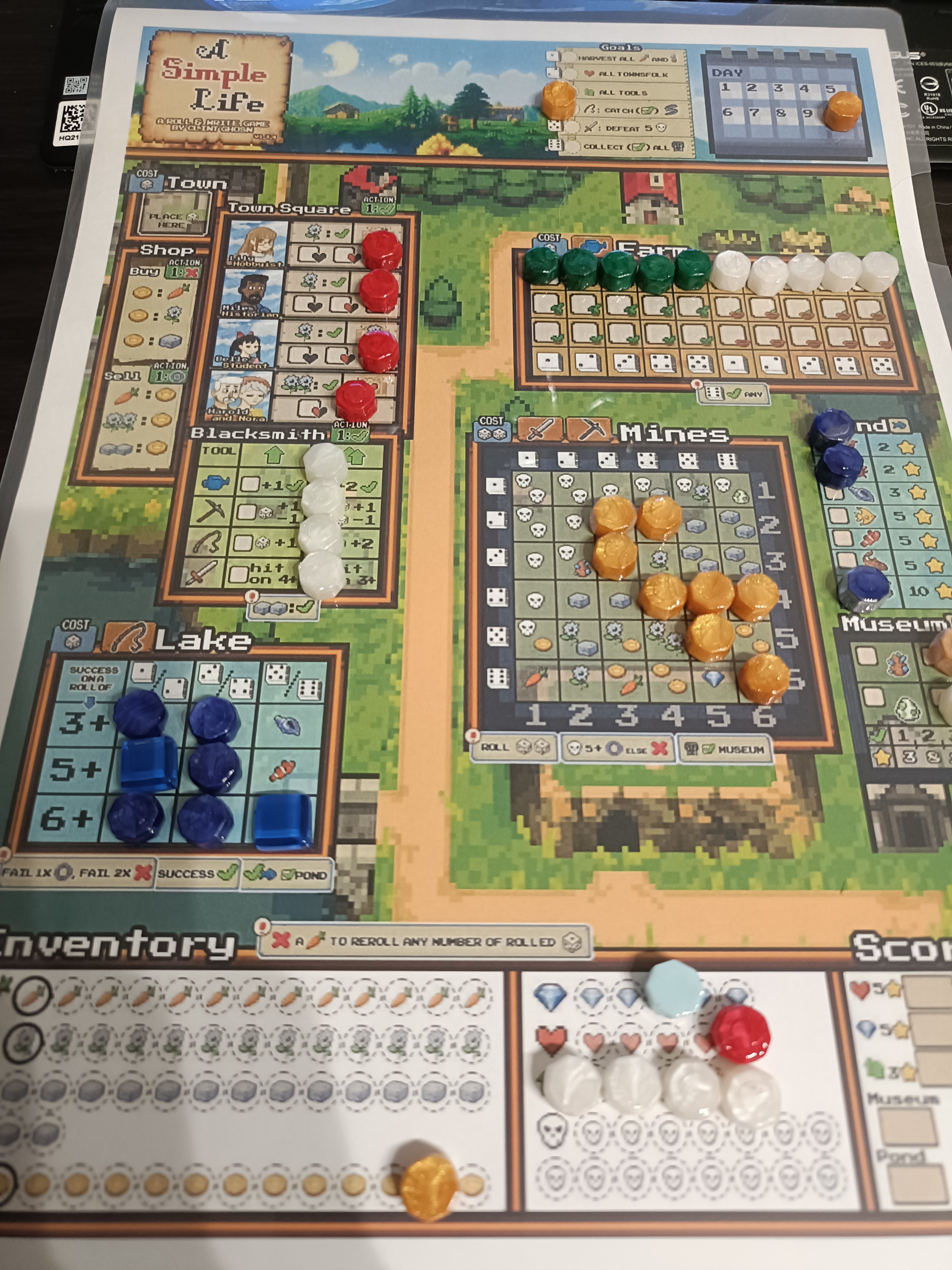 村に移住して10日間の生活を送る紙ペンゲーム。村人と仲良くなって、畑で農作物作って、釣りして、採掘して、得たものを売ってお金にして、高得点を狙うのが目的。
