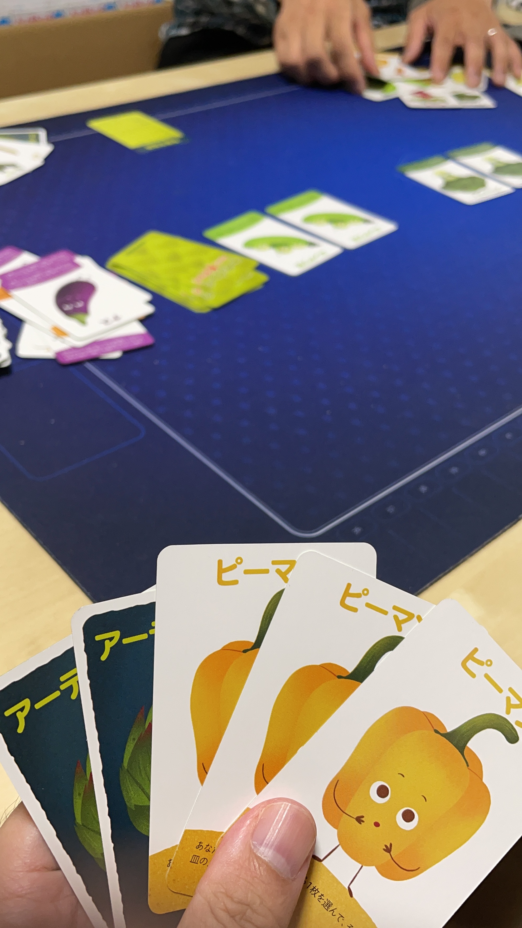 手番では、並んでる野菜カードから1枚引いて、その後、手札から野菜カードを好きなだけ使えます。