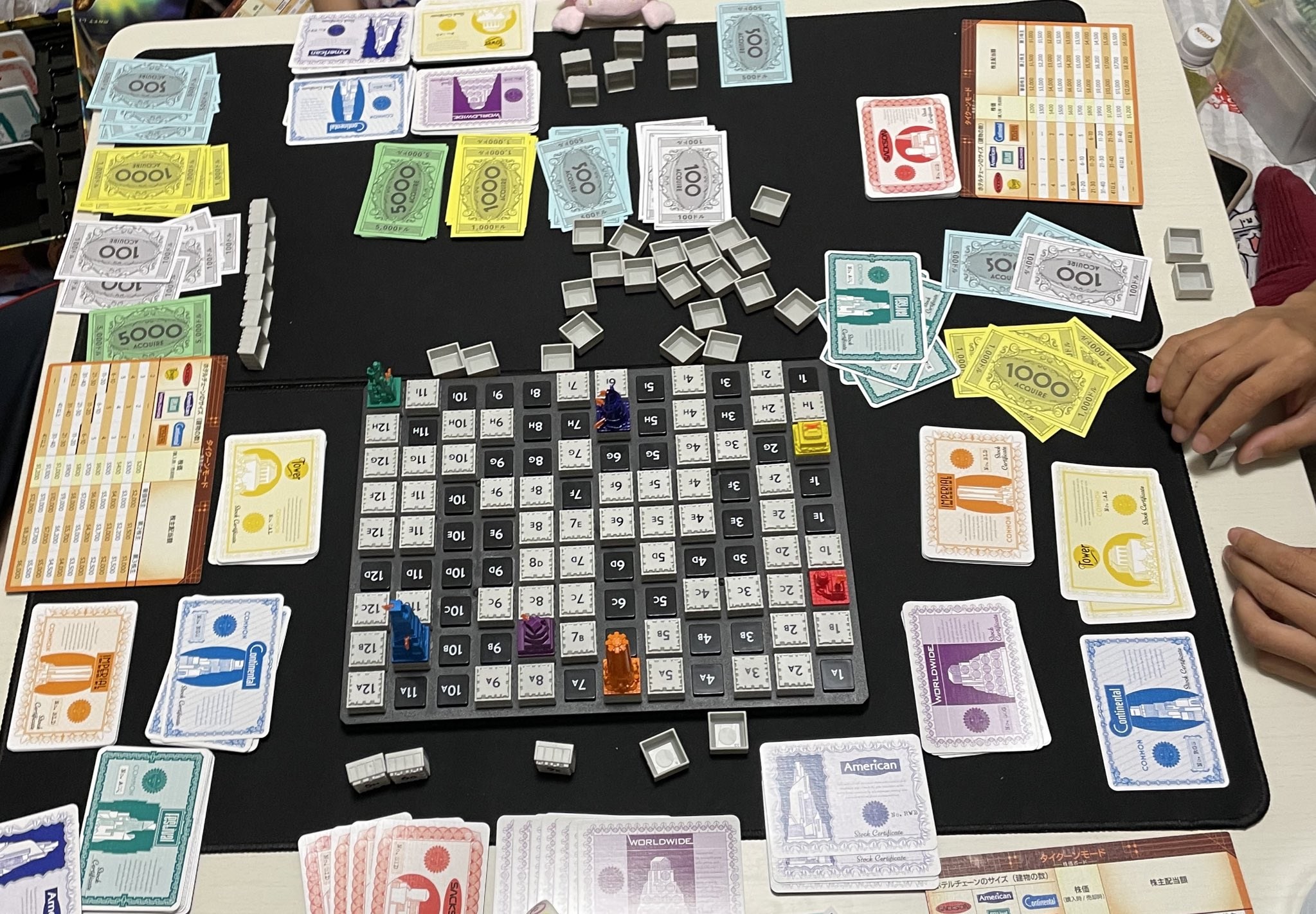 ホテルの建設と吸収合併を繰り返して資産を増やしていき、総資産が一番多い人が勝利するという単純で奥が深いゲーム