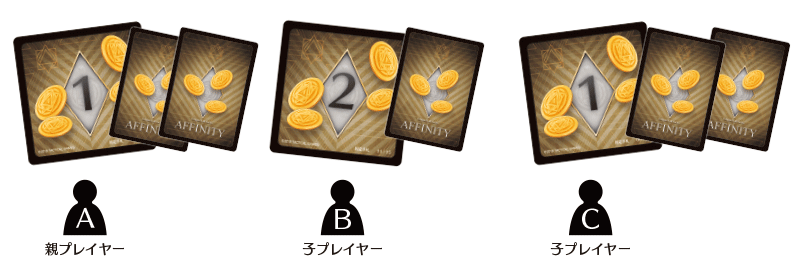親プレイヤーの行動・言動によって競りをコントロールする事が出来ます。