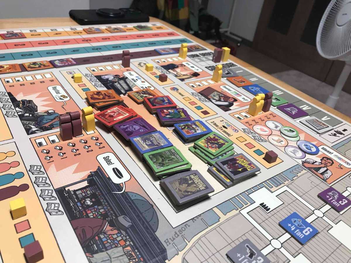 が、やや運寄り・成り行き次第という感じで戦略性に若干欠けます。パクリコミックもうまく活用できれば強いのかもしれませんが、ゲーム終了時VPが正規のコミックに比べてめちゃくちゃ少ないので、結局普通にコミックを発刊した方が強いよねと言うところに落ち着きます。