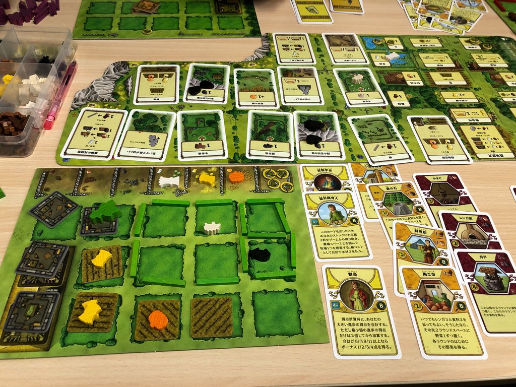 ブーブルクス初プレイ。さらに久しぶりのアグリコラということもあり皆で探り合いながらのプレイ。