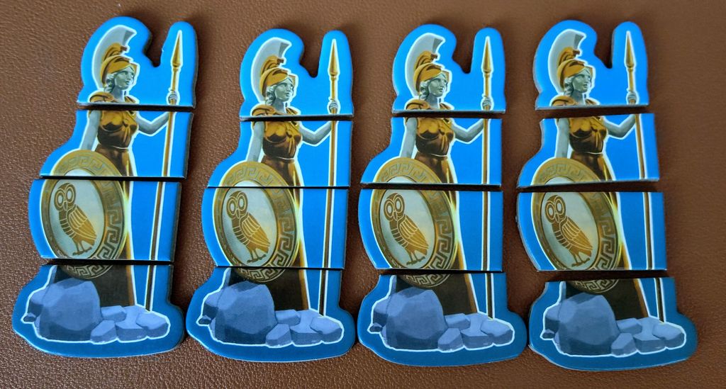さらなるご褒美は、4等分されたアテナ像。1ゲームで使用する“建設カード”4枚全て解決し、アテナ像完成を目指しましょう。女神アテナのご加護が得られます。