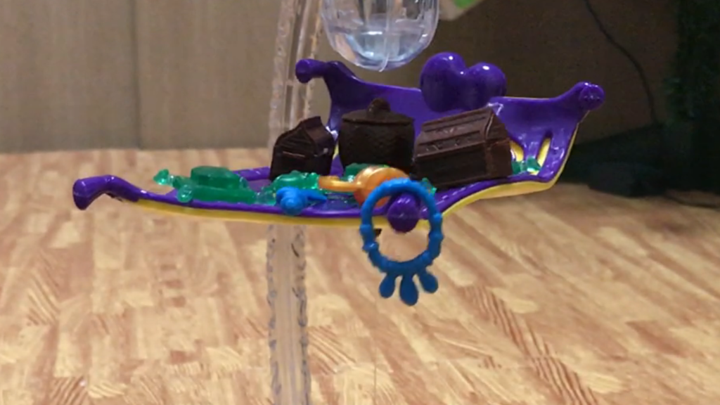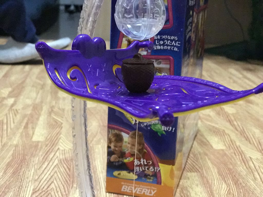 サソリを緩めすぎるとくっ付いてしまい、逆に何を乗っけてもじゅうたんが落ちなくなります。なので落ちそうで落ちない感じの距離に調整すると、お宝=重力を増やしていくドキドキ感がアップします。